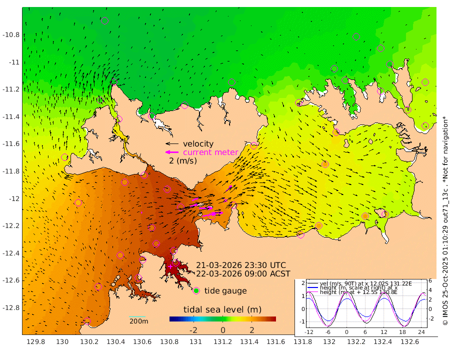 217cm/s 78T +4cm/s rms + 6cm/s 51T. Darwin_C1 52m 162cm/s 93T +4cm/s rms + 7cm/s -161T. Darwin_CW1 22m 130cm/s 72T +4cm/s rms + 8cm/s 61T. Darwin_CW2 34m 123cm/s 45T +3cm/s rms + 9cm/s 98T. Darwin_CW3 22m 211cm/s 89T +5cm/s rms + 7cm/s 88T. Darwin_C3 56m 105cm/s 66T +2cm/s rms + 9cm/s -126T. Darwin_CTbW 22m 18cm/s 56T +1cm/s rms + 1cm/s -47T. DARBGF 30m 12cm/s 29T +4cm/s rms + 3cm/s 80T. NRSDAR 19m -23cm Goodrich Bank 217cm Point Jenny 214cm Native Point 226cm Fish Reef 253cm Tapa Bay 88cm Point Fawcett (Offshore) 272cm Burge Point 232cm Munkunuwa 172cm Beagle A 275cm Parsons Bank 256cm Fenton Patches 280cm Hancox Shoal Area 286cm Nightcliff 304cm Darwin 269cm Charles Point Patches 230cm Glyde Point 204cm Chambers Bay 195cm Point Stuart 202cm Cape Hotham 193cm Christine Reef 211cm West Alligator Head 197cm East Field Island 170cm Two Hills Bay 168cm Camp Point 243cm Medina Inlet South 68cm South Barlow Point 31cm St. Asaph Bay -20cm Cape Van Dieman -13cm Snake Bay -11cm Cache Point 17cm Point Jahleel (Off) 88cm Cape Don 30cm Port Essington 32cm Smith Point - West 28cm NW Peacock Island 3cm North Of Jones Shoal 4cm Peacock Island 59cm Point David 36cm D'urville Point 64cm Copeland Island 54cm One Tree Point