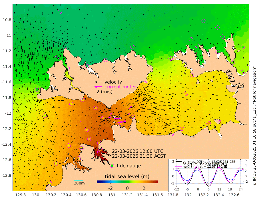 164cm/s 78T +4cm/s rms + 6cm/s 51T. Darwin_C1 52m 119cm/s 92T +4cm/s rms + 7cm/s -161T. Darwin_CW1 22m 92cm/s 71T +4cm/s rms + 8cm/s 61T. Darwin_CW2 34m 109cm/s 44T +3cm/s rms + 9cm/s 98T. Darwin_CW3 22m 161cm/s 90T +5cm/s rms + 7cm/s 88T. Darwin_C3 56m 76cm/s 65T +2cm/s rms + 9cm/s -126T. Darwin_CTbW 22m 22cm/s -64T +1cm/s rms + 1cm/s -47T. DARBGF 30m 35cm/s -40T +4cm/s rms + 3cm/s 80T. NRSDAR 19m -75cm Goodrich Bank 113cm Point Jenny 113cm Native Point 130cm Fish Reef 150cm Tapa Bay -4cm Point Fawcett (Offshore) 178cm Burge Point 139cm Munkunuwa 77cm Beagle A 191cm Parsons Bank 164cm Fenton Patches 193cm Hancox Shoal Area 192cm Nightcliff 216cm Darwin 167cm Charles Point Patches 184cm Glyde Point 185cm Chambers Bay 197cm Point Stuart 172cm Cape Hotham 168cm Christine Reef 218cm West Alligator Head 221cm East Field Island 154cm Two Hills Bay 148cm Camp Point 148cm Medina Inlet South -7cm South Barlow Point -47cm St. Asaph Bay -73cm Cape Van Dieman -59cm Snake Bay -67cm Cache Point -31cm Point Jahleel (Off) 45cm Cape Don -14cm Port Essington -16cm Smith Point - West -13cm NW Peacock Island -45cm North Of Jones Shoal -12cm Peacock Island 38cm Point David -5cm D'urville Point 44cm Copeland Island 28cm One Tree Point