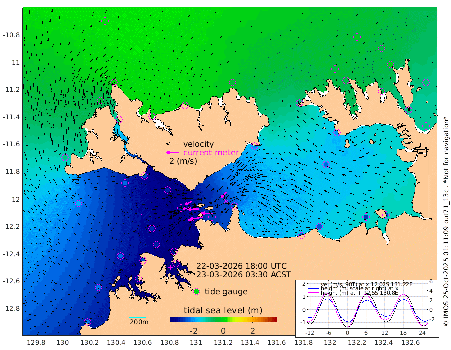 230cm/s -101T +4cm/s rms + 6cm/s 51T. Darwin_C1 52m 181cm/s -91T +4cm/s rms + 7cm/s -161T. Darwin_CW1 22m 111cm/s -106T +4cm/s rms + 8cm/s 61T. Darwin_CW2 34m 121cm/s -136T +3cm/s rms + 9cm/s 98T. Darwin_CW3 22m 193cm/s -90T +5cm/s rms + 7cm/s 88T. Darwin_C3 56m 127cm/s -115T +2cm/s rms + 9cm/s -126T. Darwin_CTbW 22m 11cm/s -157T +1cm/s rms + 1cm/s -47T. DARBGF 30m 17cm/s 172T +4cm/s rms + 3cm/s 80T. NRSDAR 19m 11cm Goodrich Bank -220cm Point Jenny -218cm Native Point -235cm Fish Reef -258cm Tapa Bay -91cm Point Fawcett (Offshore) -284cm Burge Point -228cm Munkunuwa -183cm Beagle A -286cm Parsons Bank -272cm Fenton Patches -292cm Hancox Shoal Area -295cm Nightcliff -322cm Darwin -282cm Charles Point Patches -261cm Glyde Point -239cm Chambers Bay -242cm Point Stuart -236cm Cape Hotham -226cm Christine Reef -261cm West Alligator Head -257cm East Field Island -209cm Two Hills Bay -205cm Camp Point -250cm Medina Inlet South -74cm South Barlow Point -34cm St. Asaph Bay 9cm Cape Van Dieman -4cm Snake Bay -3cm Cache Point -34cm Point Jahleel (Off) -110cm Cape Don -48cm Port Essington -50cm Smith Point - West -50cm NW Peacock Island -18cm North Of Jones Shoal -10cm Peacock Island -89cm Point David -58cm D'urville Point -93cm Copeland Island -82cm One Tree Point
