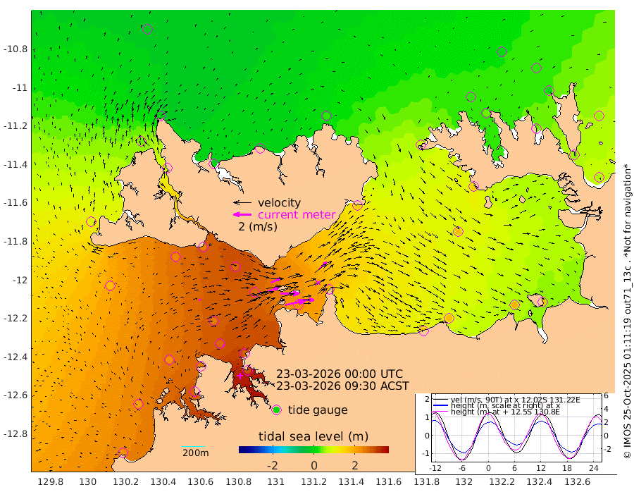 224cm/s 78T +4cm/s rms + 6cm/s 51T. Darwin_C1 52m 166cm/s 92T +4cm/s rms + 7cm/s -161T. Darwin_CW1 22m 131cm/s 72T +4cm/s rms + 8cm/s 61T. Darwin_CW2 34m 122cm/s 46T +3cm/s rms + 9cm/s 98T. Darwin_CW3 22m 211cm/s 89T +5cm/s rms + 7cm/s 88T. Darwin_C3 56m 111cm/s 66T +2cm/s rms + 9cm/s -126T. Darwin_CTbW 22m 24cm/s 66T +1cm/s rms + 1cm/s -47T. DARBGF 30m 14cm/s 66T +4cm/s rms + 3cm/s 80T. NRSDAR 19m -14cm Goodrich Bank 215cm Point Jenny 212cm Native Point 224cm Fish Reef 247cm Tapa Bay 97cm Point Fawcett (Offshore) 265cm Burge Point 232cm Munkunuwa 172cm Beagle A 268cm Parsons Bank 247cm Fenton Patches 268cm Hancox Shoal Area 275cm Nightcliff 291cm Darwin 259cm Charles Point Patches 215cm Glyde Point 183cm Chambers Bay 176cm Point Stuart 187cm Cape Hotham 176cm Christine Reef 190cm West Alligator Head 172cm East Field Island 157cm Two Hills Bay 150cm Camp Point 239cm Medina Inlet South 76cm South Barlow Point 40cm St. Asaph Bay -10cm Cape Van Dieman -4cm Snake Bay -2cm Cache Point 23cm Point Jahleel (Off) 87cm Cape Don 33cm Port Essington 37cm Smith Point - West 31cm NW Peacock Island 10cm North Of Jones Shoal 5cm Peacock Island 54cm Point David 39cm D'urville Point 58cm Copeland Island 52cm One Tree Point