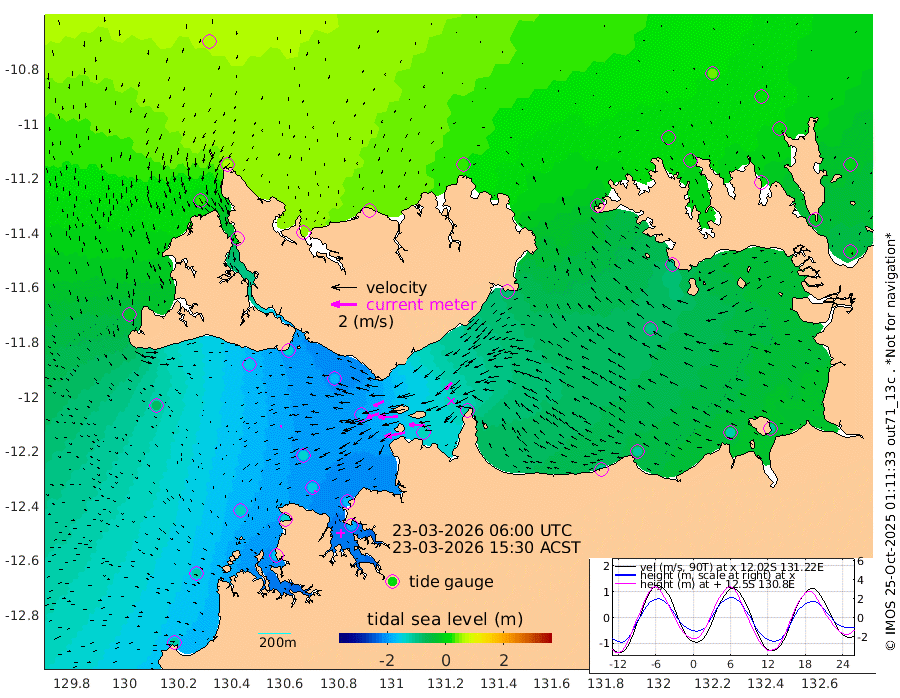 162cm/s -101T +4cm/s rms + 6cm/s 51T. Darwin_C1 52m 119cm/s -90T +4cm/s rms + 7cm/s -161T. Darwin_CW1 22m 97cm/s -107T +4cm/s rms + 8cm/s 61T. Darwin_CW2 34m 77cm/s -133T +3cm/s rms + 9cm/s 98T. Darwin_CW3 22m 153cm/s -91T +5cm/s rms + 7cm/s 88T. Darwin_C3 56m 87cm/s -115T +2cm/s rms + 9cm/s -126T. Darwin_CTbW 22m 14cm/s -118T +1cm/s rms + 1cm/s -47T. DARBGF 30m 12cm/s -126T +4cm/s rms + 3cm/s 80T. NRSDAR 19m 66cm Goodrich Bank -115cm Point Jenny -114cm Native Point -127cm Fish Reef -145cm Tapa Bay -14cm Point Fawcett (Offshore) -163cm Burge Point -153cm Munkunuwa -76cm Beagle A -180cm Parsons Bank -145cm Fenton Patches -172cm Hancox Shoal Area -173cm Nightcliff -189cm Darwin -150cm Charles Point Patches -133cm Glyde Point -110cm Chambers Bay -112cm Point Stuart -115cm Cape Hotham -100cm Christine Reef -124cm West Alligator Head -106cm East Field Island -93cm Two Hills Bay -82cm Camp Point -144cm Medina Inlet South -9cm South Barlow Point 27cm St. Asaph Bay 61cm Cape Van Dieman 52cm Snake Bay 60cm Cache Point 32cm Point Jahleel (Off) -27cm Cape Don 18cm Port Essington 17cm Smith Point - West 19cm NW Peacock Island 43cm North Of Jones Shoal 12cm Peacock Island -16cm Point David 11cm D'urville Point -21cm Copeland Island -9cm One Tree Point
