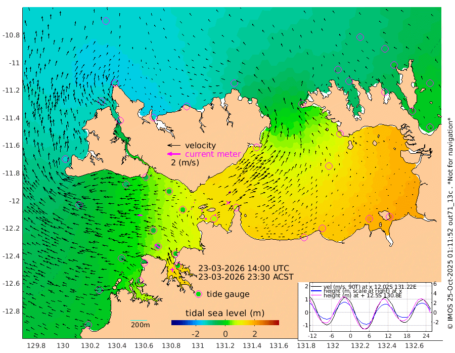 23cm/s 83T +4cm/s rms + 6cm/s 51T. Darwin_C1 52m 16cm/s 87T +4cm/s rms + 7cm/s -161T. Darwin_CW1 22m 5cm/s -67T +4cm/s rms + 8cm/s 61T. Darwin_CW2 34m 42cm/s 42T +3cm/s rms + 9cm/s 98T. Darwin_CW3 22m 19cm/s 98T +5cm/s rms + 7cm/s 88T. Darwin_C3 56m 6cm/s 61T +2cm/s rms + 9cm/s -126T. Darwin_CTbW 22m 77cm/s -85T +1cm/s rms + 1cm/s -47T. DARBGF 30m 90cm/s -54T +4cm/s rms + 3cm/s 80T. NRSDAR 19m -128cm Goodrich Bank -73cm Point Jenny -75cm Native Point -66cm Fish Reef -55cm Tapa Bay -136cm Point Fawcett (Offshore) -37cm Burge Point -70cm Munkunuwa -95cm Beagle A -18cm Parsons Bank -40cm Fenton Patches 1cm Hancox Shoal Area -16cm Nightcliff -6cm Darwin -48cm Charles Point Patches 58cm Glyde Point 145cm Chambers Bay 175cm Point Stuart 84cm Cape Hotham 128cm Christine Reef 203cm West Alligator Head 241cm East Field Island 105cm Two Hills Bay 94cm Camp Point -60cm Medina Inlet South -134cm South Barlow Point -145cm St. Asaph Bay -133cm Cape Van Dieman -126cm Snake Bay -122cm Cache Point -90cm Point Jahleel (Off) -28cm Cape Don -78cm Port Essington -80cm Smith Point - West -71cm NW Peacock Island -95cm North Of Jones Shoal -30cm Peacock Island -19cm Point David -69cm D'urville Point -11cm Copeland Island -30cm One Tree Point