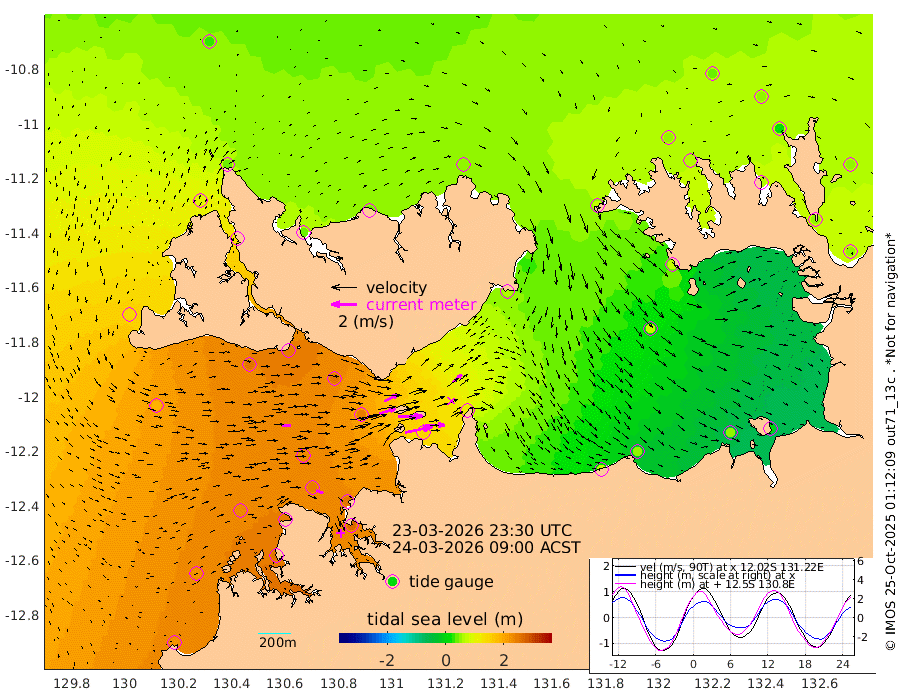 216cm/s 78T +4cm/s rms + 6cm/s 51T. Darwin_C1 52m 155cm/s 91T +4cm/s rms + 7cm/s -161T. Darwin_CW1 22m 131cm/s 74T +4cm/s rms + 8cm/s 61T. Darwin_CW2 34m 96cm/s 50T +3cm/s rms + 9cm/s 98T. Darwin_CW3 22m 192cm/s 89T +5cm/s rms + 7cm/s 88T. Darwin_C3 56m 115cm/s 65T +2cm/s rms + 9cm/s -126T. Darwin_CTbW 22m 64cm/s 85T +1cm/s rms + 1cm/s -47T. DARBGF 30m 58cm/s 111T +4cm/s rms + 3cm/s 80T. NRSDAR 19m 30cm Goodrich Bank 220cm Point Jenny 219cm Native Point 230cm Fish Reef 243cm Tapa Bay 139cm Point Fawcett (Offshore) 253cm Burge Point 253cm Munkunuwa 187cm Beagle A 256cm Parsons Bank 234cm Fenton Patches 237cm Hancox Shoal Area 251cm Nightcliff 264cm Darwin 247cm Charles Point Patches 154cm Glyde Point 70cm Chambers Bay 54cm Point Stuart 115cm Cape Hotham 71cm Christine Reef 52cm West Alligator Head 8cm East Field Island 76cm Two Hills Bay 67cm Camp Point 244cm Medina Inlet South 125cm South Barlow Point 91cm St. Asaph Bay 38cm Cape Van Dieman 44cm Snake Bay 37cm Cache Point 48cm Point Jahleel (Off) 79cm Cape Don 54cm Port Essington 58cm Smith Point - West 48cm NW Peacock Island 37cm North Of Jones Shoal 14cm Peacock Island 50cm Point David 57cm D'urville Point 50cm Copeland Island 51cm One Tree Point
