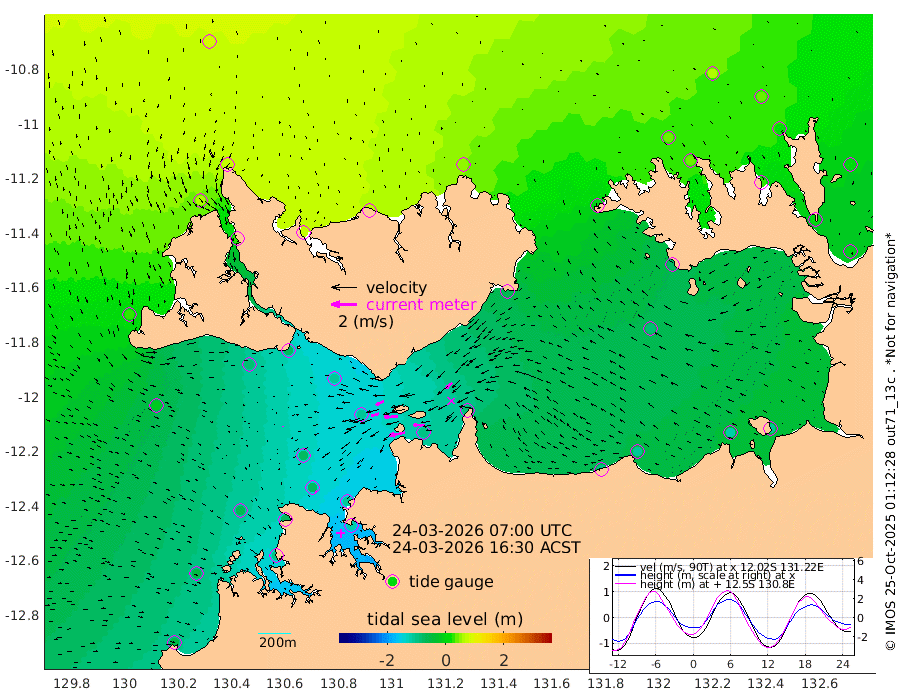 127cm/s -101T +4cm/s rms + 6cm/s 51T. Darwin_C1 52m 87cm/s -90T +4cm/s rms + 7cm/s -161T. Darwin_CW1 22m 64cm/s -107T +4cm/s rms + 8cm/s 61T. Darwin_CW2 34m 62cm/s -134T +3cm/s rms + 9cm/s 98T. Darwin_CW3 22m 107cm/s -91T +5cm/s rms + 7cm/s 88T. Darwin_C3 56m 70cm/s -115T +2cm/s rms + 9cm/s -126T. Darwin_CTbW 22m 7cm/s 138T +1cm/s rms + 1cm/s -47T. DARBGF 30m 13cm/s 167T +4cm/s rms + 3cm/s 80T. NRSDAR 19m 81cm Goodrich Bank -54cm Point Jenny -53cm Native Point -64cm Fish Reef -77cm Tapa Bay 27cm Point Fawcett (Offshore) -91cm Burge Point -85cm Munkunuwa -21cm Beagle A -111cm Parsons Bank -78cm Fenton Patches -107cm Hancox Shoal Area -103cm Nightcliff -113cm Darwin -76cm Charles Point Patches -90cm Glyde Point -93cm Chambers Bay -104cm Point Stuart -86cm Cape Hotham -85cm Christine Reef -119cm West Alligator Head -111cm East Field Island -78cm Two Hills Bay -60cm Camp Point -76cm Medina Inlet South 30cm South Barlow Point 57cm St. Asaph Bay 79cm Cape Van Dieman 72cm Snake Bay 76cm Cache Point 49cm Point Jahleel (Off) -4cm Cape Don 37cm Port Essington 35cm Smith Point - West 36cm NW Peacock Island 58cm North Of Jones Shoal 17cm Peacock Island 2cm Point David 29cm D'urville Point -4cm Copeland Island 9cm One Tree Point