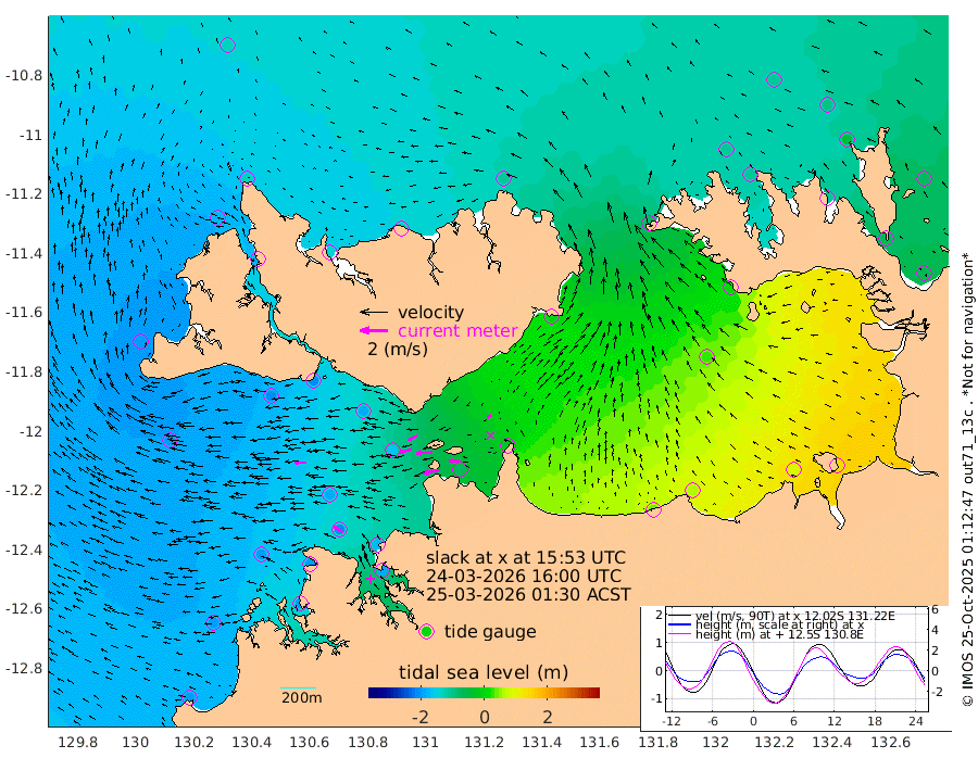 125cm/s -102T +4cm/s rms + 6cm/s 51T. Darwin_C1 52m 86cm/s -88T +4cm/s rms + 7cm/s -161T. Darwin_CW1 22m 90cm/s -107T +4cm/s rms + 8cm/s 61T. Darwin_CW2 34m 32cm/s -117T +3cm/s rms + 9cm/s 98T. Darwin_CW3 22m 111cm/s -93T +5cm/s rms + 7cm/s 88T. Darwin_C3 56m 73cm/s -116T +2cm/s rms + 9cm/s -126T. Darwin_CTbW 22m 84cm/s -90T +1cm/s rms + 1cm/s -47T. DARBGF 30m 79cm/s -59T +4cm/s rms + 3cm/s 80T. NRSDAR 19m -127cm Goodrich Bank -196cm Point Jenny -198cm Native Point -201cm Fish Reef -200cm Tapa Bay -194cm Point Fawcett (Offshore) -197cm Burge Point -210cm Munkunuwa -194cm Beagle A -185cm Parsons Bank -186cm Fenton Patches -160cm Hancox Shoal Area -178cm Nightcliff -189cm Darwin -208cm Charles Point Patches -77cm Glyde Point 39cm Chambers Bay 67cm Point Stuart -33cm Cape Hotham 28cm Christine Reef 88cm West Alligator Head 138cm East Field Island 5cm Two Hills Bay 0cm Camp Point -207cm Medina Inlet South -186cm South Barlow Point -171cm St. Asaph Bay -134cm Cape Van Dieman -137cm Snake Bay -127cm Cache Point -111cm Point Jahleel (Off) -88cm Cape Don -108cm Port Essington -110cm Smith Point - West -99cm NW Peacock Island -109cm North Of Jones Shoal -37cm Peacock Island -67cm Point David -103cm D'urville Point -60cm Copeland Island -76cm One Tree Point