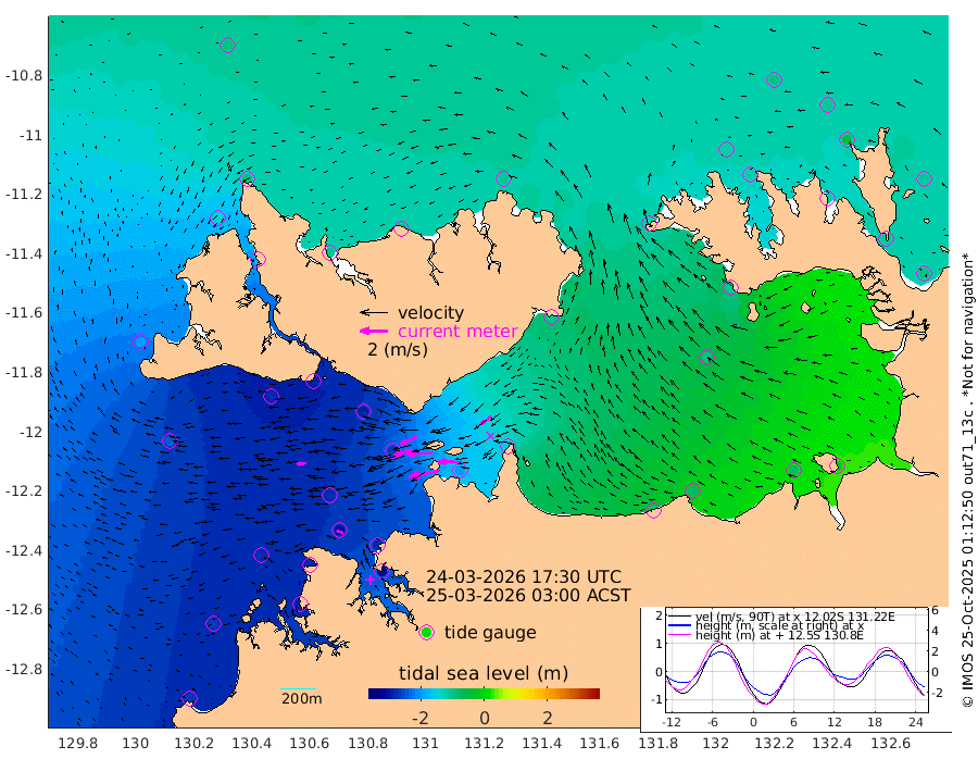 232cm/s -102T +4cm/s rms + 6cm/s 51T. Darwin_C1 52m 166cm/s -90T +4cm/s rms + 7cm/s -161T. Darwin_CW1 22m 135cm/s -107T +4cm/s rms + 8cm/s 61T. Darwin_CW2 34m 94cm/s -128T +3cm/s rms + 9cm/s 98T. Darwin_CW3 22m 189cm/s -91T +5cm/s rms + 7cm/s 88T. Darwin_C3 56m 133cm/s -115T +2cm/s rms + 9cm/s -126T. Darwin_CTbW 22m 67cm/s -95T +1cm/s rms + 1cm/s -47T. DARBGF 30m 50cm/s -68T +4cm/s rms + 3cm/s 80T. NRSDAR 19m -91cm Goodrich Bank -259cm Point Jenny -259cm Native Point -271cm Fish Reef -281cm Tapa Bay -194cm Point Fawcett (Offshore) -291cm Burge Point -274cm Munkunuwa -236cm Beagle A -287cm Parsons Bank -274cm Fenton Patches -269cm Hancox Shoal Area -281cm Nightcliff -305cm Darwin -299cm Charles Point Patches -192cm Glyde Point -95cm Chambers Bay -78cm Point Stuart -147cm Cape Hotham -97cm Christine Reef -73cm West Alligator Head -31cm East Field Island -108cm Two Hills Bay -104cm Camp Point -283cm Medina Inlet South -180cm South Barlow Point -146cm St. Asaph Bay -98cm Cape Van Dieman -107cm Snake Bay -100cm Cache Point -104cm Point Jahleel (Off) -128cm Cape Don -113cm Port Essington -115cm Smith Point - West -107cm NW Peacock Island -97cm North Of Jones Shoal -35cm Peacock Island -104cm Point David -114cm D'urville Point -101cm Copeland Island -108cm One Tree Point