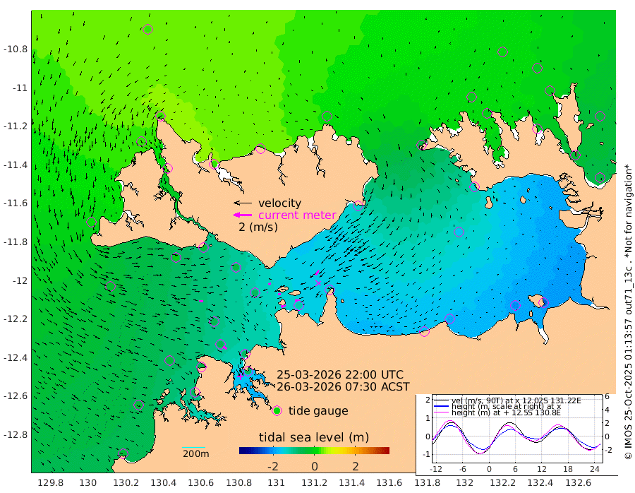 56cm/s -102T +4cm/s rms + 6cm/s 51T. Darwin_C1 52m 51cm/s -92T +4cm/s rms + 7cm/s -161T. Darwin_CW1 22m 1cm/s 11T +4cm/s rms + 8cm/s 61T. Darwin_CW2 34m 62cm/s -142T +3cm/s rms + 9cm/s 98T. Darwin_CW3 22m 29cm/s -84T +5cm/s rms + 7cm/s 88T. Darwin_C3 56m 28cm/s -115T +2cm/s rms + 9cm/s -126T. Darwin_CTbW 22m 43cm/s 97T +1cm/s rms + 1cm/s -47T. DARBGF 30m 50cm/s 126T +4cm/s rms + 3cm/s 80T. NRSDAR 19m 29cm Goodrich Bank -40cm Point Jenny -35cm Native Point -39cm Fish Reef -46cm Tapa Bay 12cm Point Fawcett (Offshore) -61cm Burge Point -8cm Munkunuwa -25cm Beagle A -55cm Parsons Bank -60cm Fenton Patches -75cm Hancox Shoal Area -68cm Nightcliff -74cm Darwin -56cm Charles Point Patches -115cm Glyde Point -174cm Chambers Bay -189cm Point Stuart -127cm Cape Hotham -163cm Christine Reef -208cm West Alligator Head -238cm East Field Island -139cm Two Hills Bay -136cm Camp Point -34cm Medina Inlet South 28cm South Barlow Point 33cm St. Asaph Bay 32cm Cape Van Dieman 31cm Snake Bay 16cm Cache Point 1cm Point Jahleel (Off) -49cm Cape Don -8cm Port Essington -6cm Smith Point - West -12cm NW Peacock Island 4cm North Of Jones Shoal 0cm Peacock Island -42cm Point David -13cm D'urville Point -46cm Copeland Island -38cm One Tree Point
