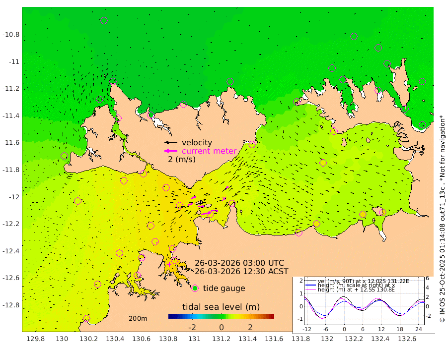 155cm/s 78T +4cm/s rms + 6cm/s 51T. Darwin_C1 52m 109cm/s 92T +4cm/s rms + 7cm/s -161T. Darwin_CW1 22m 67cm/s 71T +4cm/s rms + 8cm/s 61T. Darwin_CW2 34m 76cm/s 50T +3cm/s rms + 9cm/s 98T. Darwin_CW3 22m 103cm/s 90T +5cm/s rms + 7cm/s 88T. Darwin_C3 56m 89cm/s 65T +2cm/s rms + 9cm/s -126T. Darwin_CTbW 22m 9cm/s 50T +1cm/s rms + 1cm/s -47T. DARBGF 30m 8cm/s -12T +4cm/s rms + 3cm/s 80T. NRSDAR 19m -11cm Goodrich Bank 110cm Point Jenny 106cm Native Point 111cm Fish Reef 118cm Tapa Bay 51cm Point Fawcett (Offshore) 127cm Burge Point 107cm Munkunuwa 88cm Beagle A 121cm Parsons Bank 120cm Fenton Patches 124cm Hancox Shoal Area 133cm Nightcliff 130cm Darwin 112cm Charles Point Patches 114cm Glyde Point 120cm Chambers Bay 124cm Point Stuart 108cm Cape Hotham 120cm Christine Reef 139cm West Alligator Head 136cm East Field Island 104cm Two Hills Bay 89cm Camp Point 111cm Medina Inlet South 29cm South Barlow Point 18cm St. Asaph Bay -9cm Cape Van Dieman -10cm Snake Bay 0cm Cache Point 12cm Point Jahleel (Off) 48cm Cape Don 9cm Port Essington 13cm Smith Point - West 8cm NW Peacock Island 1cm North Of Jones Shoal 0cm Peacock Island 11cm Point David 10cm D'urville Point 13cm Copeland Island 14cm One Tree Point