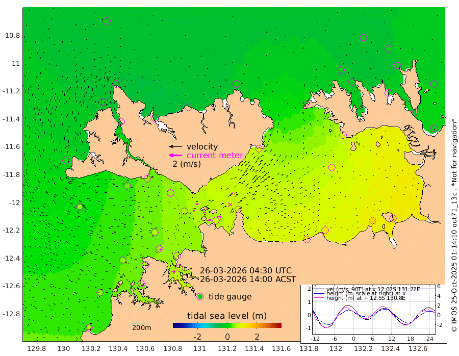 67cm/s 78T +4cm/s rms + 6cm/s 51T. Darwin_C1 52m 65cm/s 91T +4cm/s rms + 7cm/s -161T. Darwin_CW1 22m 18cm/s 73T +4cm/s rms + 8cm/s 61T. Darwin_CW2 34m 46cm/s 44T +3cm/s rms + 9cm/s 98T. Darwin_CW3 22m 41cm/s 92T +5cm/s rms + 7cm/s 88T. Darwin_C3 56m 39cm/s 67T +2cm/s rms + 9cm/s -126T. Darwin_CTbW 22m 18cm/s -77T +1cm/s rms + 1cm/s -47T. DARBGF 30m 24cm/s -51T +4cm/s rms + 3cm/s 80T. NRSDAR 19m -16cm Goodrich Bank 57cm Point Jenny 53cm Native Point 50cm Fish Reef 57cm Tapa Bay 15cm Point Fawcett (Offshore) 67cm Burge Point 34cm Munkunuwa 45cm Beagle A 49cm Parsons Bank 66cm Fenton Patches 64cm Hancox Shoal Area 73cm Nightcliff 62cm Darwin 51cm Charles Point Patches 84cm Glyde Point 125cm Chambers Bay 129cm Point Stuart 88cm Cape Hotham 123cm Christine Reef 147cm West Alligator Head 165cm East Field Island 95cm Two Hills Bay 92cm Camp Point 46cm Medina Inlet South -8cm South Barlow Point -6cm St. Asaph Bay -19cm Cape Van Dieman -24cm Snake Bay -7cm Cache Point 1cm Point Jahleel (Off) 29cm Cape Don -8cm Port Essington -6cm Smith Point - West -9cm NW Peacock Island -10cm North Of Jones Shoal -4cm Peacock Island -8cm Point David -11cm D'urville Point -6cm Copeland Island -5cm One Tree Point