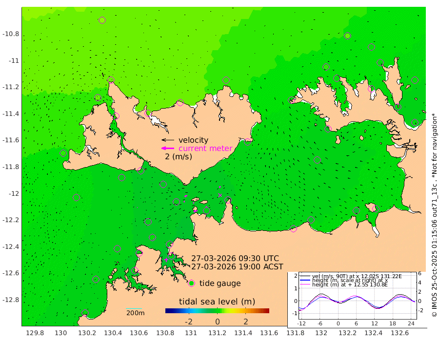 65cm/s -101T +4cm/s rms + 6cm/s 51T. Darwin_C1 52m 22cm/s -89T +4cm/s rms + 7cm/s -161T. Darwin_CW1 22m 16cm/s -111T +4cm/s rms + 8cm/s 61T. Darwin_CW2 34m 23cm/s -129T +3cm/s rms + 9cm/s 98T. Darwin_CW3 22m 9cm/s -94T +5cm/s rms + 7cm/s 88T. Darwin_C3 56m 44cm/s -116T +2cm/s rms + 9cm/s -126T. Darwin_CTbW 22m 7cm/s -85T +1cm/s rms + 1cm/s -47T. DARBGF 30m 9cm/s -70T +4cm/s rms + 3cm/s 80T. NRSDAR 19m 46cm Goodrich Bank 0cm Point Jenny 2cm Native Point -5cm Fish Reef -1cm Tapa Bay 25cm Point Fawcett (Offshore) 0cm Burge Point -7cm Munkunuwa 7cm Beagle A -13cm Parsons Bank -5cm Fenton Patches -9cm Hancox Shoal Area -7cm Nightcliff -1cm Darwin 14cm Charles Point Patches -5cm Glyde Point -10cm Chambers Bay -21cm Point Stuart -11cm Cape Hotham -9cm Christine Reef -26cm West Alligator Head -20cm East Field Island -13cm Two Hills Bay 8cm Camp Point 3cm Medina Inlet South 30cm South Barlow Point 37cm St. Asaph Bay 43cm Cape Van Dieman 44cm Snake Bay 40cm Cache Point 30cm Point Jahleel (Off) 13cm Cape Don 26cm Port Essington 19cm Smith Point - West 21cm NW Peacock Island 35cm North Of Jones Shoal 10cm Peacock Island 9cm Point David 16cm D'urville Point 4cm Copeland Island 14cm One Tree Point