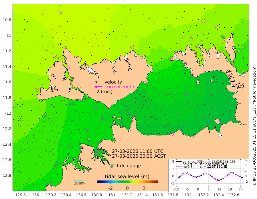 28cm/s -103T +4cm/s rms + 6cm/s 51T. Darwin_C1 52m 17cm/s -84T +4cm/s rms + 7cm/s -161T. Darwin_CW1 22m 7cm/s -123T +4cm/s rms + 8cm/s 61T. Darwin_CW2 34m 21cm/s -137T +3cm/s rms + 9cm/s 98T. Darwin_CW3 22m 2cm/s -87T +5cm/s rms + 7cm/s 88T. Darwin_C3 56m 16cm/s -115T +2cm/s rms + 9cm/s -126T. Darwin_CTbW 22m 6cm/s 93T +1cm/s rms + 1cm/s -47T. DARBGF 30m 4cm/s 138T +4cm/s rms + 3cm/s 80T. NRSDAR 19m 62cm Goodrich Bank 5cm Point Jenny 7cm Native Point 3cm Fish Reef 5cm Tapa Bay 41cm Point Fawcett (Offshore) -1cm Burge Point 5cm Munkunuwa 9cm Beagle A 1cm Parsons Bank -8cm Fenton Patches -3cm Hancox Shoal Area -7cm Nightcliff 7cm Darwin 23cm Charles Point Patches -11cm Glyde Point -35cm Chambers Bay -44cm Point Stuart -19cm Cape Hotham -33cm Christine Reef -55cm West Alligator Head -61cm East Field Island -21cm Two Hills Bay -11cm Camp Point 14cm Medina Inlet South 51cm South Barlow Point 53cm St. Asaph Bay 61cm Cape Van Dieman 66cm Snake Bay 57cm Cache Point 46cm Point Jahleel (Off) 27cm Cape Don 50cm Port Essington 45cm Smith Point - West 47cm NW Peacock Island 58cm North Of Jones Shoal 19cm Peacock Island 39cm Point David 45cm D'urville Point 34cm Copeland Island 44cm One Tree Point
