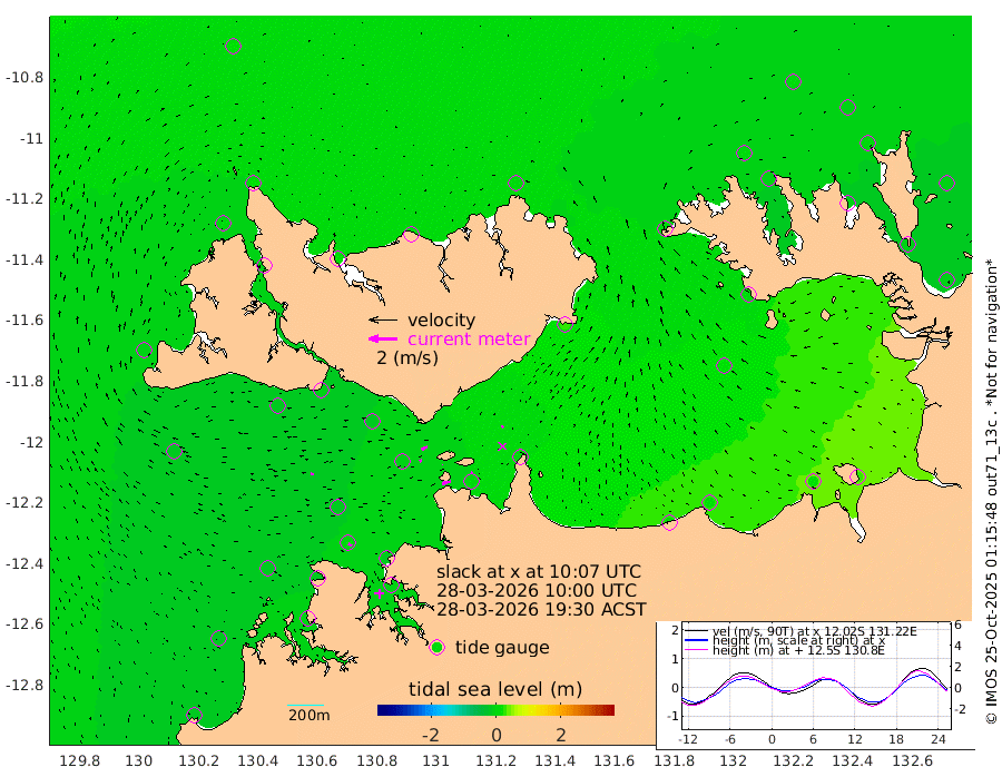 63cm/s -101T +4cm/s rms + 6cm/s 51T. Darwin_C1 52m 14cm/s -86T +4cm/s rms + 7cm/s -161T. Darwin_CW1 22m 16cm/s -111T +4cm/s rms + 8cm/s 61T. Darwin_CW2 34m 16cm/s -120T +3cm/s rms + 9cm/s 98T. Darwin_CW3 22m 1cm/s 146T +5cm/s rms + 7cm/s 88T. Darwin_C3 56m 45cm/s -116T +2cm/s rms + 9cm/s -126T. Darwin_CTbW 22m 25cm/s -84T +1cm/s rms + 1cm/s -47T. DARBGF 30m 26cm/s -58T +4cm/s rms + 3cm/s 80T. NRSDAR 19m 16cm Goodrich Bank -16cm Point Jenny -14cm Native Point -21cm Fish Reef -12cm Tapa Bay -6cm Point Fawcett (Offshore) -8cm Burge Point -19cm Munkunuwa -16cm Beagle A -17cm Parsons Bank -15cm Fenton Patches -10cm Hancox Shoal Area -11cm Nightcliff -3cm Darwin 2cm Charles Point Patches 4cm Glyde Point 18cm Chambers Bay 14cm Point Stuart 3cm Cape Hotham 17cm Christine Reef 15cm West Alligator Head 29cm East Field Island 5cm Two Hills Bay 25cm Camp Point -9cm Medina Inlet South -1cm South Barlow Point 5cm St. Asaph Bay 12cm Cape Van Dieman 13cm Snake Bay 10cm Cache Point 7cm Point Jahleel (Off) 2cm Cape Don 3cm Port Essington -5cm Smith Point - West -2cm NW Peacock Island 8cm North Of Jones Shoal 1cm Peacock Island -5cm Point David -7cm D'urville Point -8cm Copeland Island -2cm One Tree Point