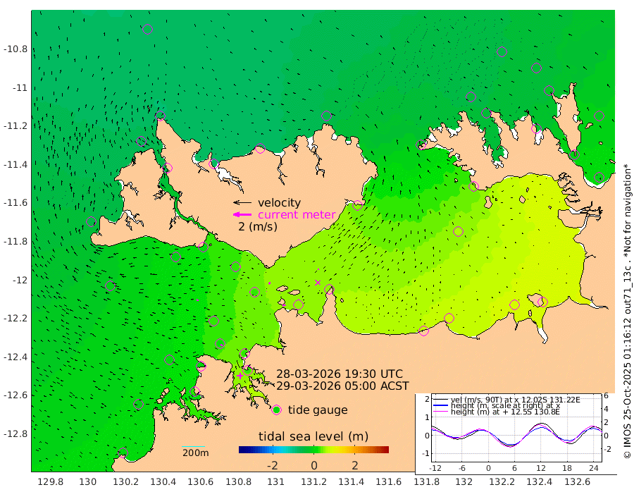 30cm/s -105T +4cm/s rms + 6cm/s 51T. Darwin_C1 52m 4cm/s -85T +4cm/s rms + 7cm/s -161T. Darwin_CW1 22m 3cm/s -78T +4cm/s rms + 8cm/s 61T. Darwin_CW2 34m 10cm/s -11T +3cm/s rms + 9cm/s 98T. Darwin_CW3 22m 2cm/s -92T +5cm/s rms + 7cm/s 88T. Darwin_C3 56m 21cm/s -115T +2cm/s rms + 9cm/s -126T. Darwin_CTbW 22m 23cm/s -85T +1cm/s rms + 1cm/s -47T. DARBGF 30m 23cm/s -60T +4cm/s rms + 3cm/s 80T. NRSDAR 19m -67cm Goodrich Bank 2cm Point Jenny -1cm Native Point 7cm Fish Reef 11cm Tapa Bay -50cm Point Fawcett (Offshore) 27cm Burge Point -2cm Munkunuwa -4cm Beagle A 23cm Parsons Bank 30cm Fenton Patches 33cm Hancox Shoal Area 29cm Nightcliff 31cm Darwin 14cm Charles Point Patches 45cm Glyde Point 74cm Chambers Bay 79cm Point Stuart 52cm Cape Hotham 62cm Christine Reef 88cm West Alligator Head 104cm East Field Island 45cm Two Hills Bay 51cm Camp Point 2cm Medina Inlet South -54cm South Barlow Point -62cm St. Asaph Bay -67cm Cape Van Dieman -69cm Snake Bay -61cm Cache Point -46cm Point Jahleel (Off) -14cm Cape Don -38cm Port Essington -39cm Smith Point - West -36cm NW Peacock Island -53cm North Of Jones Shoal -16cm Peacock Island -8cm Point David -33cm D'urville Point -2cm Copeland Island -17cm One Tree Point