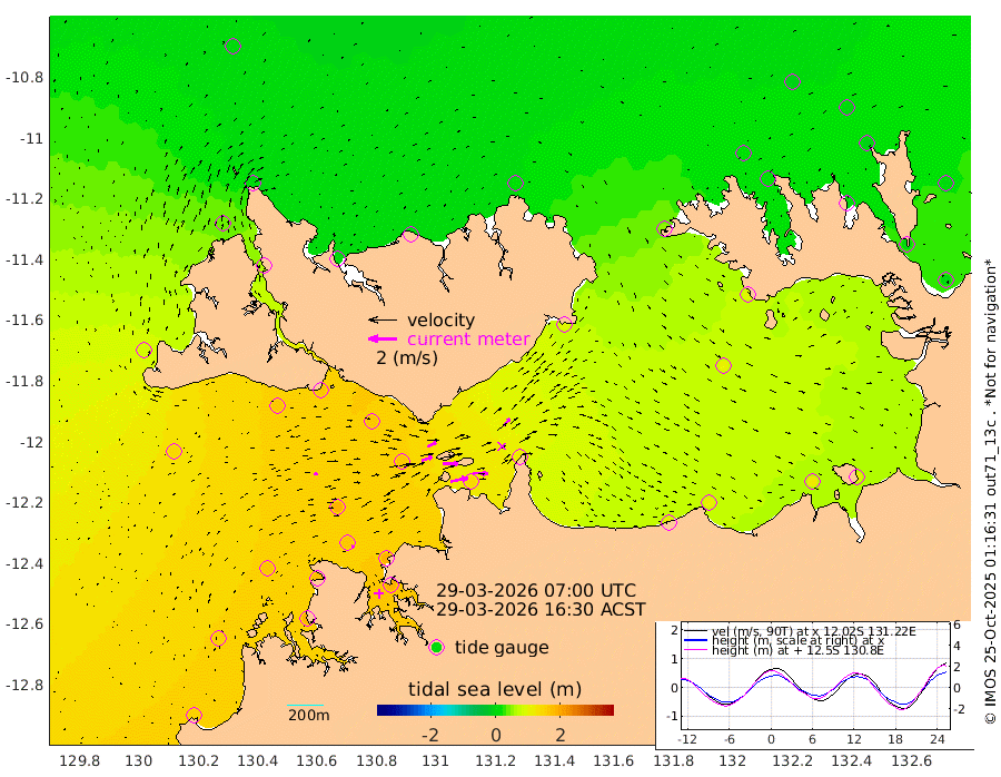 125cm/s 78T +4cm/s rms + 6cm/s 51T. Darwin_C1 52m 107cm/s 92T +4cm/s rms + 7cm/s -161T. Darwin_CW1 22m 75cm/s 72T +4cm/s rms + 8cm/s 61T. Darwin_CW2 34m 70cm/s 45T +3cm/s rms + 9cm/s 98T. Darwin_CW3 22m 111cm/s 89T +5cm/s rms + 7cm/s 88T. Darwin_C3 56m 69cm/s 66T +2cm/s rms + 9cm/s -126T. Darwin_CTbW 22m 25cm/s 79T +1cm/s rms + 1cm/s -47T. DARBGF 30m 20cm/s 110T +4cm/s rms + 3cm/s 80T. NRSDAR 19m 4cm Goodrich Bank 157cm Point Jenny 157cm Native Point 164cm Fish Reef 171cm Tapa Bay 83cm Point Fawcett (Offshore) 189cm Burge Point 160cm Munkunuwa 143cm Beagle A 166cm Parsons Bank 182cm Fenton Patches 163cm Hancox Shoal Area 181cm Nightcliff 185cm Darwin 169cm Charles Point Patches 140cm Glyde Point 113cm Chambers Bay 108cm Point Stuart 117cm Cape Hotham 106cm Christine Reef 117cm West Alligator Head 110cm East Field Island 93cm Two Hills Bay 99cm Camp Point 164cm Medina Inlet South 61cm South Barlow Point 43cm St. Asaph Bay 7cm Cape Van Dieman 7cm Snake Bay 10cm Cache Point 20cm Point Jahleel (Off) 51cm Cape Don 14cm Port Essington 13cm Smith Point - West 6cm NW Peacock Island -1cm North Of Jones Shoal 0cm Peacock Island 9cm Point David 9cm D'urville Point 9cm Copeland Island 10cm One Tree Point