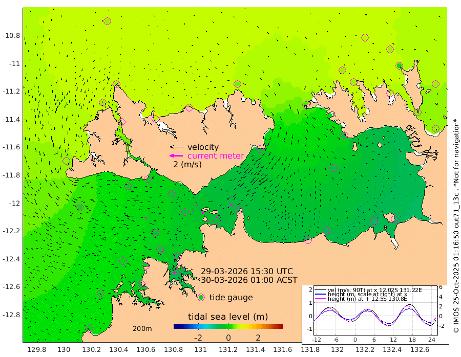 20cm/s 78T +4cm/s rms + 6cm/s 51T. Darwin_C1 52m 18cm/s -86T +4cm/s rms + 7cm/s -161T. Darwin_CW1 22m 11cm/s -115T +4cm/s rms + 8cm/s 61T. Darwin_CW2 34m 14cm/s -154T +3cm/s rms + 9cm/s 98T. Darwin_CW3 22m 29cm/s -91T +5cm/s rms + 7cm/s 88T. Darwin_C3 56m 23cm/s 62T +2cm/s rms + 9cm/s -126T. Darwin_CTbW 22m 31cm/s 99T +1cm/s rms + 1cm/s -47T. DARBGF 30m 32cm/s 128T +4cm/s rms + 3cm/s 80T. NRSDAR 19m 51cm Goodrich Bank 2cm Point Jenny 1cm Native Point -2cm Fish Reef -9cm Tapa Bay 46cm Point Fawcett (Offshore) -28cm Burge Point -8cm Munkunuwa 3cm Beagle A -16cm Parsons Bank -29cm Fenton Patches -24cm Hancox Shoal Area -27cm Nightcliff -31cm Darwin -12cm Charles Point Patches -38cm Glyde Point -58cm Chambers Bay -64cm Point Stuart -37cm Cape Hotham -57cm Christine Reef -77cm West Alligator Head -96cm East Field Island -32cm Two Hills Bay -44cm Camp Point -7cm Medina Inlet South 44cm South Barlow Point 48cm St. Asaph Bay 56cm Cape Van Dieman 57cm Snake Bay 56cm Cache Point 43cm Point Jahleel (Off) 27cm Cape Don 53cm Port Essington 54cm Smith Point - West 55cm NW Peacock Island 61cm North Of Jones Shoal 22cm Peacock Island 53cm Point David 57cm D'urville Point 50cm Copeland Island 55cm One Tree Point