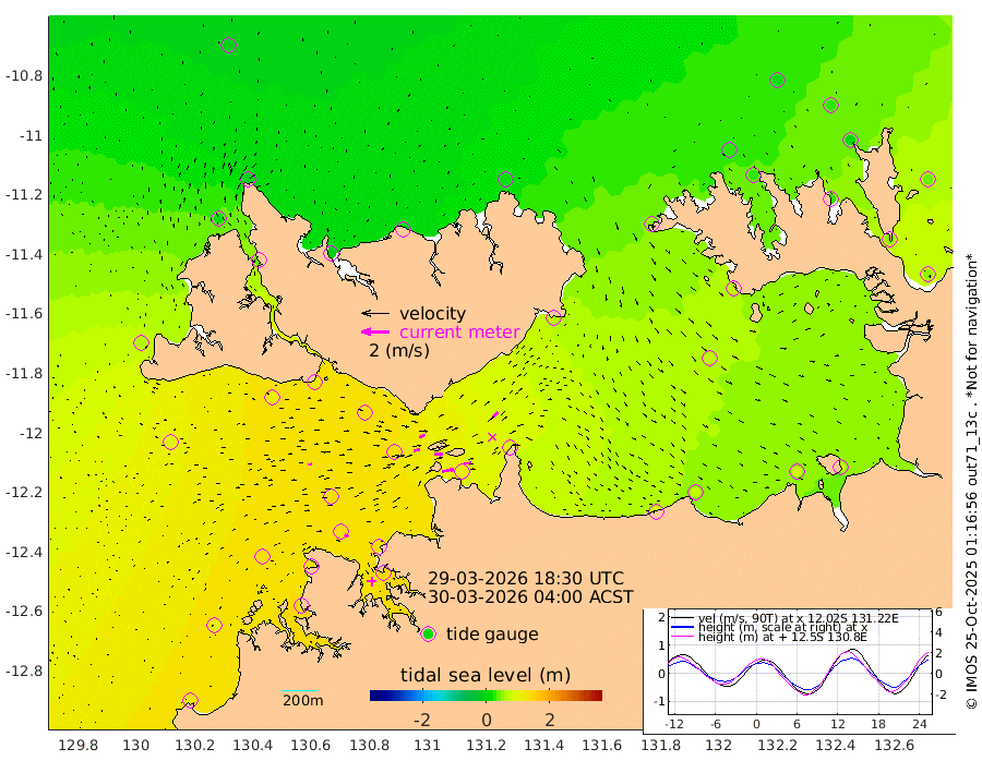 84cm/s 78T +4cm/s rms + 6cm/s 51T. Darwin_C1 52m 55cm/s 90T +4cm/s rms + 7cm/s -161T. Darwin_CW1 22m 46cm/s 73T +4cm/s rms + 8cm/s 61T. Darwin_CW2 34m 47cm/s 41T +3cm/s rms + 9cm/s 98T. Darwin_CW3 22m 58cm/s 89T +5cm/s rms + 7cm/s 88T. Darwin_C3 56m 45cm/s 65T +2cm/s rms + 9cm/s -126T. Darwin_CTbW 22m 27cm/s 87T +1cm/s rms + 1cm/s -47T. DARBGF 30m 26cm/s 117T +4cm/s rms + 3cm/s 80T. NRSDAR 19m -10cm Goodrich Bank 114cm Point Jenny 110cm Native Point 124cm Fish Reef 124cm Tapa Bay 57cm Point Fawcett (Offshore) 135cm Burge Point 112cm Munkunuwa 99cm Beagle A 132cm Parsons Bank 131cm Fenton Patches 129cm Hancox Shoal Area 133cm Nightcliff 139cm Darwin 127cm Charles Point Patches 103cm Glyde Point 82cm Chambers Bay 78cm Point Stuart 92cm Cape Hotham 69cm Christine Reef 80cm West Alligator Head 68cm East Field Island 72cm Two Hills Bay 68cm Camp Point 117cm Medina Inlet South 39cm South Barlow Point 21cm St. Asaph Bay -4cm Cape Van Dieman -4cm Snake Bay 3cm Cache Point 13cm Point Jahleel (Off) 48cm Cape Don 27cm Port Essington 27cm Smith Point - West 26cm NW Peacock Island 10cm North Of Jones Shoal 7cm Peacock Island 50cm Point David 33cm D'urville Point 54cm Copeland Island 45cm One Tree Point