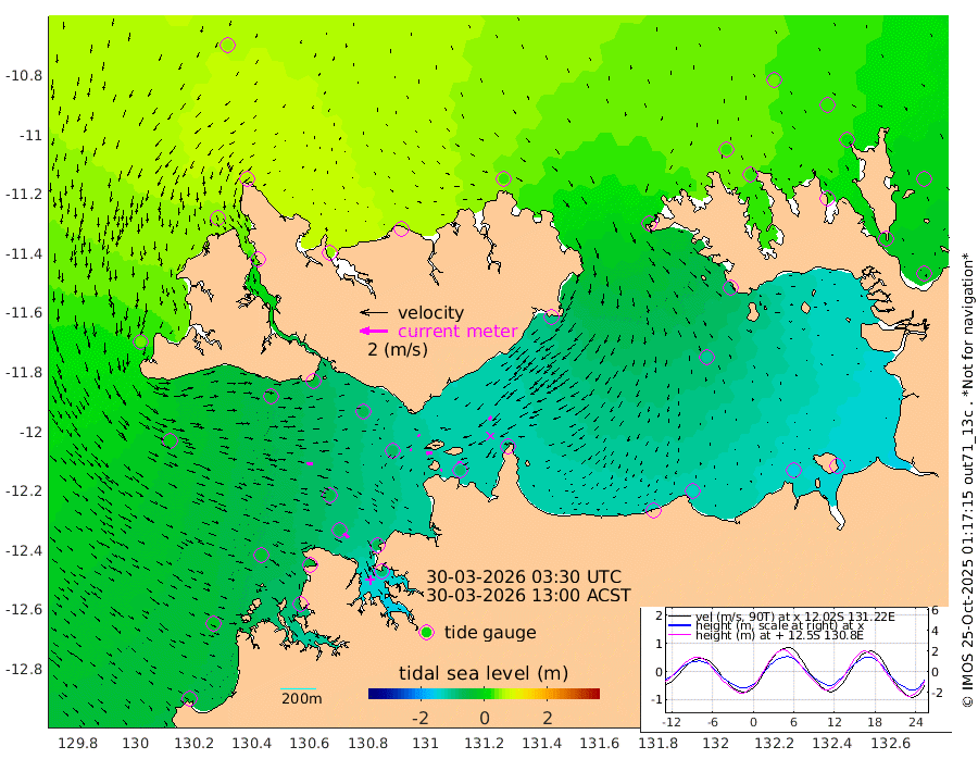 10cm/s 75T +4cm/s rms + 6cm/s 51T. Darwin_C1 52m 24cm/s -96T +4cm/s rms + 7cm/s -161T. Darwin_CW1 22m 12cm/s -106T +4cm/s rms + 8cm/s 61T. Darwin_CW2 34m 31cm/s -150T +3cm/s rms + 9cm/s 98T. Darwin_CW3 22m 44cm/s -90T +5cm/s rms + 7cm/s 88T. Darwin_C3 56m 21cm/s 63T +2cm/s rms + 9cm/s -126T. Darwin_CTbW 22m 42cm/s 99T +1cm/s rms + 1cm/s -47T. DARBGF 30m 46cm/s 127T +4cm/s rms + 3cm/s 80T. NRSDAR 19m 56cm Goodrich Bank -24cm Point Jenny -22cm Native Point -29cm Fish Reef -43cm Tapa Bay 35cm Point Fawcett (Offshore) -63cm Burge Point -27cm Munkunuwa -2cm Beagle A -61cm Parsons Bank -49cm Fenton Patches -73cm Hancox Shoal Area -64cm Nightcliff -83cm Darwin -61cm Charles Point Patches -90cm Glyde Point -126cm Chambers Bay -132cm Point Stuart -94cm Cape Hotham -110cm Christine Reef -147cm West Alligator Head -167cm East Field Island -89cm Two Hills Bay -100cm Camp Point -38cm Medina Inlet South 42cm South Barlow Point 52cm St. Asaph Bay 58cm Cape Van Dieman 56cm Snake Bay 52cm Cache Point 33cm Point Jahleel (Off) -11cm Cape Don 23cm Port Essington 31cm Smith Point - West 25cm NW Peacock Island 37cm North Of Jones Shoal 11cm Peacock Island -9cm Point David 25cm D'urville Point -14cm Copeland Island -4cm One Tree Point