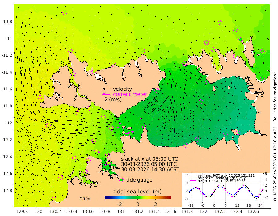 113cm/s 78T +4cm/s rms + 6cm/s 51T. Darwin_C1 52m 61cm/s 89T +4cm/s rms + 7cm/s -161T. Darwin_CW1 22m 45cm/s 74T +4cm/s rms + 8cm/s 61T. Darwin_CW2 34m 28cm/s 66T +3cm/s rms + 9cm/s 98T. Darwin_CW3 22m 38cm/s 87T +5cm/s rms + 7cm/s 88T. Darwin_C3 56m 76cm/s 64T +2cm/s rms + 9cm/s -126T. Darwin_CTbW 22m 64cm/s 93T +1cm/s rms + 1cm/s -47T. DARBGF 30m 65cm/s 122T +4cm/s rms + 3cm/s 80T. NRSDAR 19m 60cm Goodrich Bank 107cm Point Jenny 108cm Native Point 110cm Fish Reef 101cm Tapa Bay 106cm Point Fawcett (Offshore) 93cm Burge Point 109cm Munkunuwa 114cm Beagle A 84cm Parsons Bank 100cm Fenton Patches 66cm Hancox Shoal Area 86cm Nightcliff 76cm Darwin 85cm Charles Point Patches 24cm Glyde Point -41cm Chambers Bay -53cm Point Stuart 1cm Cape Hotham -35cm Christine Reef -64cm West Alligator Head -96cm East Field Island -16cm Two Hills Bay -25cm Camp Point 101cm Medina Inlet South 97cm South Barlow Point 90cm St. Asaph Bay 67cm Cape Van Dieman 67cm Snake Bay 63cm Cache Point 53cm Point Jahleel (Off) 37cm Cape Don 46cm Port Essington 53cm Smith Point - West 43cm NW Peacock Island 46cm North Of Jones Shoal 15cm Peacock Island 19cm Point David 47cm D'urville Point 15cm Copeland Island 23cm One Tree Point