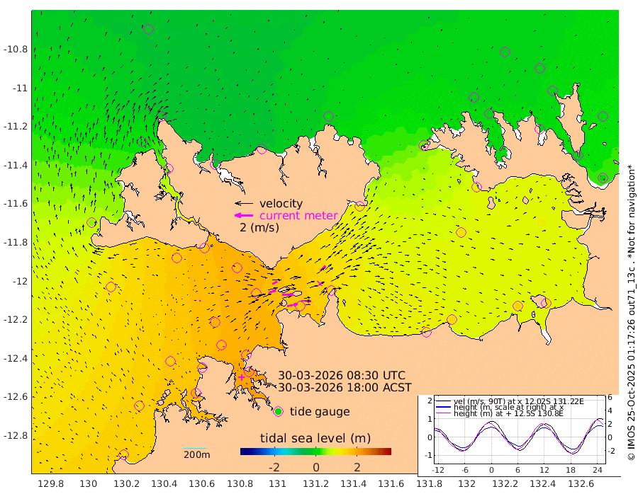115cm/s 78T +4cm/s rms + 6cm/s 51T. Darwin_C1 52m 107cm/s 92T +4cm/s rms + 7cm/s -161T. Darwin_CW1 22m 81cm/s 71T +4cm/s rms + 8cm/s 61T. Darwin_CW2 34m 73cm/s 45T +3cm/s rms + 9cm/s 98T. Darwin_CW3 22m 127cm/s 89T +5cm/s rms + 7cm/s 88T. Darwin_C3 56m 59cm/s 65T +2cm/s rms + 9cm/s -126T. Darwin_CTbW 22m 9cm/s 31T +1cm/s rms + 1cm/s -47T. DARBGF 30m 8cm/s -12T +4cm/s rms + 3cm/s 80T. NRSDAR 19m -21cm Goodrich Bank 146cm Point Jenny 146cm Native Point 157cm Fish Reef 169cm Tapa Bay 55cm Point Fawcett (Offshore) 194cm Burge Point 159cm Munkunuwa 124cm Beagle A 176cm Parsons Bank 182cm Fenton Patches 175cm Hancox Shoal Area 186cm Nightcliff 204cm Darwin 177cm Charles Point Patches 160cm Glyde Point 141cm Chambers Bay 141cm Point Stuart 137cm Cape Hotham 128cm Christine Reef 154cm West Alligator Head 154cm East Field Island 112cm Two Hills Bay 122cm Camp Point 164cm Medina Inlet South 38cm South Barlow Point 14cm St. Asaph Bay -20cm Cape Van Dieman -17cm Snake Bay -17cm Cache Point 1cm Point Jahleel (Off) 45cm Cape Don 0cm Port Essington -5cm Smith Point - West -9cm NW Peacock Island -22cm North Of Jones Shoal -7cm Peacock Island 7cm Point David -6cm D'urville Point 7cm Copeland Island 4cm One Tree Point