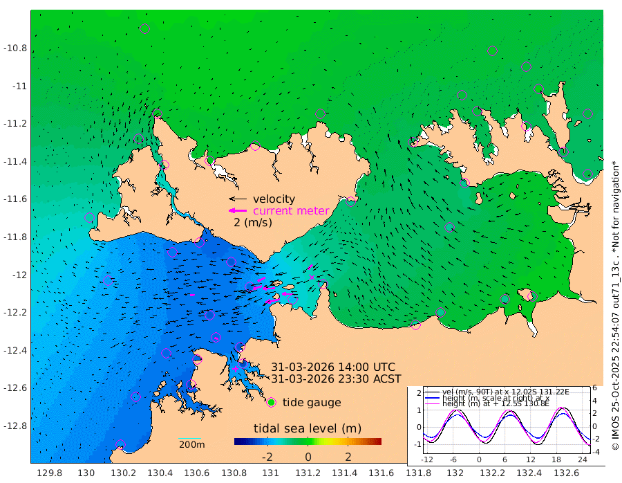 165cm/s -102T +4cm/s rms + 6cm/s 51T. Darwin_C1 52m 126cm/s -90T +4cm/s rms + 7cm/s -161T. Darwin_CW1 22m 99cm/s -107T +4cm/s rms + 8cm/s 61T. Darwin_CW2 34m 72cm/s -135T +3cm/s rms + 9cm/s 98T. Darwin_CW3 22m 135cm/s -91T +5cm/s rms + 7cm/s 88T. Darwin_C3 56m 94cm/s -115T +2cm/s rms + 9cm/s -126T. Darwin_CTbW 22m 50cm/s -94T +1cm/s rms + 1cm/s -47T. DARBGF 30m 43cm/s -66T +4cm/s rms + 3cm/s 80T. NRSDAR 19m -8cm Goodrich Bank -206cm Point Jenny -204cm Native Point -228cm Fish Reef -226cm Tapa Bay -115cm Point Fawcett (Offshore) -249cm Burge Point -219cm Munkunuwa -192cm Beagle A -237cm Parsons Bank -245cm Fenton Patches -226cm Hancox Shoal Area -244cm Nightcliff -257cm Darwin -236cm Charles Point Patches -175cm Glyde Point -114cm Chambers Bay -106cm Point Stuart -144cm Cape Hotham -103cm Christine Reef -109cm West Alligator Head -86cm East Field Island -105cm Two Hills Bay -103cm Camp Point -225cm Medina Inlet South -97cm South Barlow Point -64cm St. Asaph Bay -15cm Cape Van Dieman -19cm Snake Bay -20cm Cache Point -34cm Point Jahleel (Off) -75cm Cape Don -41cm Port Essington -44cm Smith Point - West -36cm NW Peacock Island -20cm North Of Jones Shoal -9cm Peacock Island -47cm Point David -45cm D'urville Point -49cm Copeland Island -46cm One Tree Point