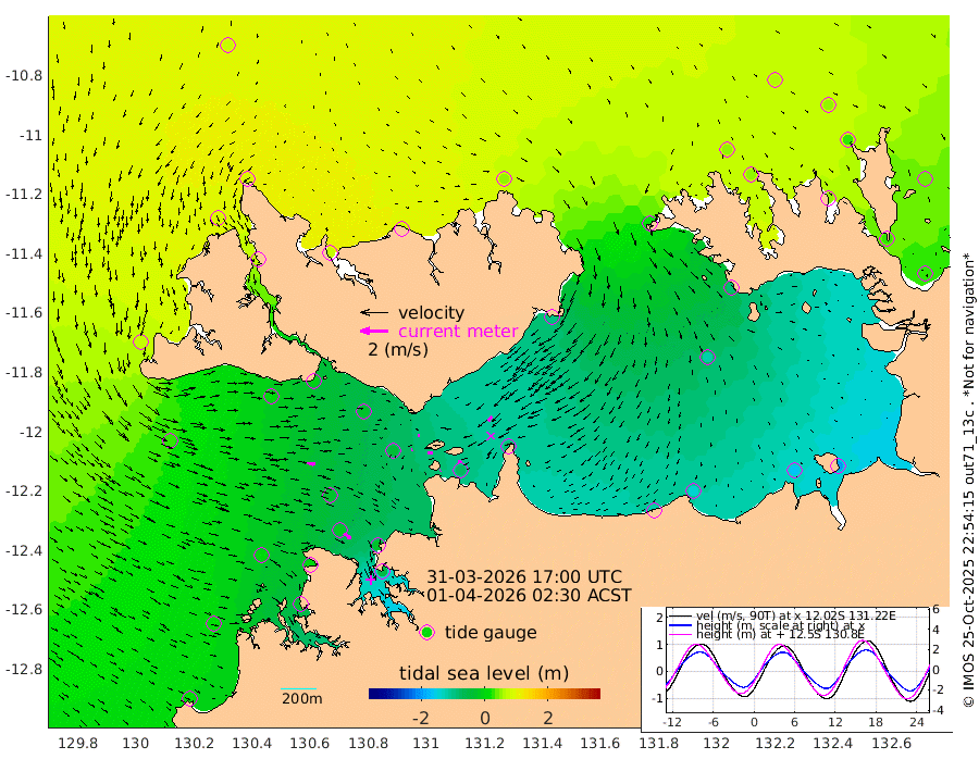 4cm/s -109T +4cm/s rms + 6cm/s 51T. Darwin_C1 52m 23cm/s -84T +4cm/s rms + 7cm/s -161T. Darwin_CW1 22m 8cm/s -114T +4cm/s rms + 8cm/s 61T. Darwin_CW2 34m 42cm/s -146T +3cm/s rms + 9cm/s 98T. Darwin_CW3 22m 39cm/s -89T +5cm/s rms + 7cm/s 88T. Darwin_C3 56m 15cm/s 59T +2cm/s rms + 9cm/s -126T. Darwin_CTbW 22m 58cm/s 97T +1cm/s rms + 1cm/s -47T. DARBGF 30m 62cm/s 127T +4cm/s rms + 3cm/s 80T. NRSDAR 19m 74cm Goodrich Bank 16cm Point Jenny 16cm Native Point 5cm Fish Reef 0cm Tapa Bay 74cm Point Fawcett (Offshore) -29cm Burge Point 9cm Munkunuwa 23cm Beagle A -25cm Parsons Bank -26cm Fenton Patches -37cm Hancox Shoal Area -28cm Nightcliff -46cm Darwin -16cm Charles Point Patches -76cm Glyde Point -122cm Chambers Bay -144cm Point Stuart -84cm Cape Hotham -117cm Christine Reef -166cm West Alligator Head -198cm East Field Island -89cm Two Hills Bay -92cm Camp Point -1cm Medina Inlet South 70cm South Barlow Point 80cm St. Asaph Bay 81cm Cape Van Dieman 79cm Snake Bay 74cm Cache Point 52cm Point Jahleel (Off) 12cm Cape Don 52cm Port Essington 55cm Smith Point - West 51cm NW Peacock Island 67cm North Of Jones Shoal 23cm Peacock Island 33cm Point David 53cm D'urville Point 28cm Copeland Island 35cm One Tree Point