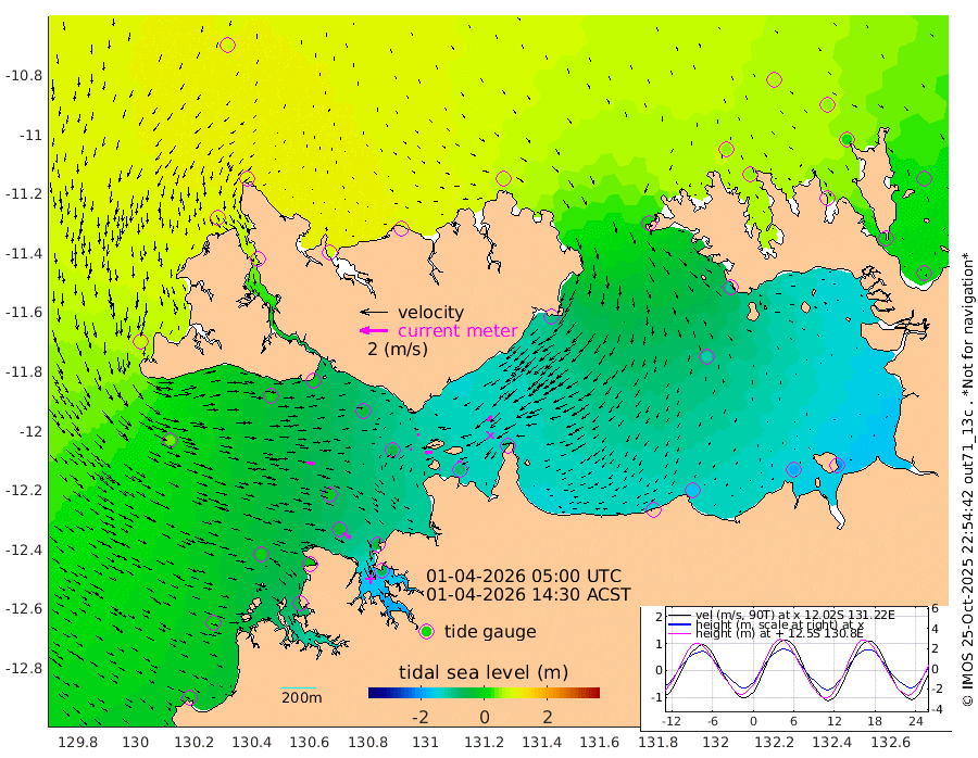 9cm/s -101T +4cm/s rms + 6cm/s 51T. Darwin_C1 52m 24cm/s -89T +4cm/s rms + 7cm/s -161T. Darwin_CW1 22m 14cm/s -108T +4cm/s rms + 8cm/s 61T. Darwin_CW2 34m 46cm/s -144T +3cm/s rms + 9cm/s 98T. Darwin_CW3 22m 54cm/s -89T +5cm/s rms + 7cm/s 88T. Darwin_C3 56m 16cm/s 60T +2cm/s rms + 9cm/s -126T. Darwin_CTbW 22m 56cm/s 98T +1cm/s rms + 1cm/s -47T. DARBGF 30m 62cm/s 128T +4cm/s rms + 3cm/s 80T. NRSDAR 19m 87cm Goodrich Bank 8cm Point Jenny 10cm Native Point -1cm Fish Reef -15cm Tapa Bay 69cm Point Fawcett (Offshore) -34cm Burge Point -5cm Munkunuwa 37cm Beagle A -42cm Parsons Bank -17cm Fenton Patches -56cm Hancox Shoal Area -39cm Nightcliff -62cm Darwin -32cm Charles Point Patches -85cm Glyde Point -141cm Chambers Bay -159cm Point Stuart -98cm Cape Hotham -122cm Christine Reef -181cm West Alligator Head -206cm East Field Island -102cm Two Hills Bay -101cm Camp Point -12cm Medina Inlet South 77cm South Barlow Point 87cm St. Asaph Bay 91cm Cape Van Dieman 88cm Snake Bay 82cm Cache Point 58cm Point Jahleel (Off) 5cm Cape Don 48cm Port Essington 56cm Smith Point - West 50cm NW Peacock Island 64cm North Of Jones Shoal 21cm Peacock Island 11cm Point David 50cm D'urville Point 5cm Copeland Island 17cm One Tree Point