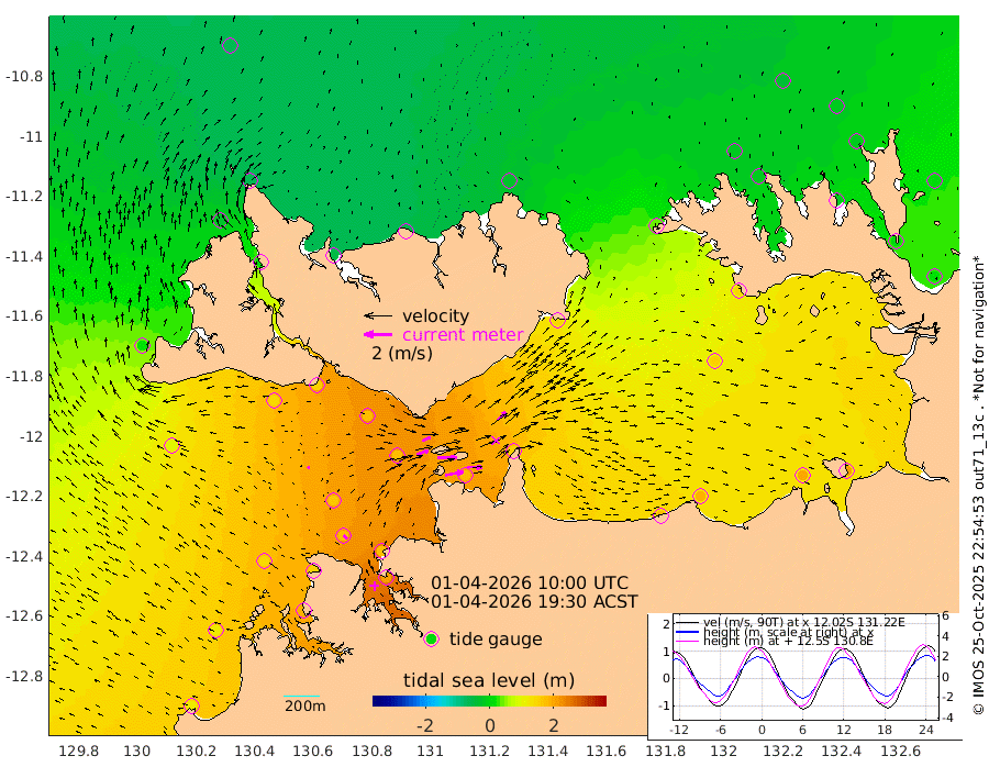 131cm/s 79T +4cm/s rms + 6cm/s 51T. Darwin_C1 52m 110cm/s 92T +4cm/s rms + 7cm/s -161T. Darwin_CW1 22m 87cm/s 71T +4cm/s rms + 8cm/s 61T. Darwin_CW2 34m 86cm/s 46T +3cm/s rms + 9cm/s 98T. Darwin_CW3 22m 141cm/s 90T +5cm/s rms + 7cm/s 88T. Darwin_C3 56m 64cm/s 65T +2cm/s rms + 9cm/s -126T. Darwin_CTbW 22m 18cm/s -59T +1cm/s rms + 1cm/s -47T. DARBGF 30m 33cm/s -43T +4cm/s rms + 3cm/s 80T. NRSDAR 19m -57cm Goodrich Bank 120cm Point Jenny 120cm Native Point 141cm Fish Reef 152cm Tapa Bay 15cm Point Fawcett (Offshore) 182cm Burge Point 143cm Munkunuwa 91cm Beagle A 179cm Parsons Bank 168cm Fenton Patches 178cm Hancox Shoal Area 176cm Nightcliff 210cm Darwin 172cm Charles Point Patches 175cm Glyde Point 170cm Chambers Bay 181cm Point Stuart 157cm Cape Hotham 151cm Christine Reef 200cm West Alligator Head 206cm East Field Island 138cm Two Hills Bay 140cm Camp Point 152cm Medina Inlet South 4cm South Barlow Point -27cm St. Asaph Bay -57cm Cape Van Dieman -50cm Snake Bay -52cm Cache Point -24cm Point Jahleel (Off) 39cm Cape Don -14cm Port Essington -21cm Smith Point - West -21cm NW Peacock Island -44cm North Of Jones Shoal -13cm Peacock Island 10cm Point David -17cm D'urville Point 14cm Copeland Island 6cm One Tree Point