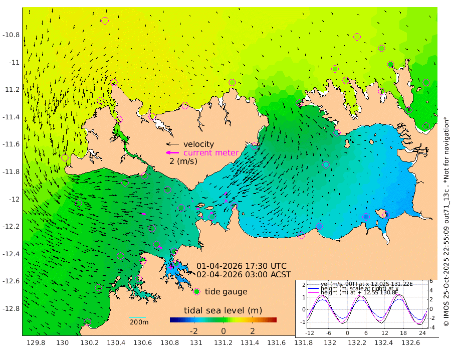 25cm/s -103T +4cm/s rms + 6cm/s 51T. Darwin_C1 52m 33cm/s -86T +4cm/s rms + 7cm/s -161T. Darwin_CW1 22m 9cm/s -109T +4cm/s rms + 8cm/s 61T. Darwin_CW2 34m 57cm/s -144T +3cm/s rms + 9cm/s 98T. Darwin_CW3 22m 46cm/s -88T +5cm/s rms + 7cm/s 88T. Darwin_C3 56m 6cm/s 49T +2cm/s rms + 9cm/s -126T. Darwin_CTbW 22m 64cm/s 97T +1cm/s rms + 1cm/s -47T. DARBGF 30m 70cm/s 128T +4cm/s rms + 3cm/s 80T. NRSDAR 19m 79cm Goodrich Bank 8cm Point Jenny 10cm Native Point -6cm Fish Reef -8cm Tapa Bay 73cm Point Fawcett (Offshore) -41cm Burge Point 5cm Munkunuwa 19cm Beagle A -40cm Parsons Bank -36cm Fenton Patches -52cm Hancox Shoal Area -40cm Nightcliff -64cm Darwin -30cm Charles Point Patches -99cm Glyde Point -154cm Chambers Bay -181cm Point Stuart -110cm Cape Hotham -146cm Christine Reef -206cm West Alligator Head -242cm East Field Island -119cm Two Hills Bay -116cm Camp Point -11cm Medina Inlet South 73cm South Barlow Point 85cm St. Asaph Bay 86cm Cape Van Dieman 82cm Snake Bay 75cm Cache Point 50cm Point Jahleel (Off) -2cm Cape Don 44cm Port Essington 49cm Smith Point - West 43cm NW Peacock Island 62cm North Of Jones Shoal 20cm Peacock Island 18cm Point David 44cm D'urville Point 12cm Copeland Island 20cm One Tree Point