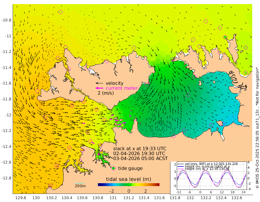 110cm/s 78T +4cm/s rms + 6cm/s 51T. Darwin_C1 52m 83cm/s 86T +4cm/s rms + 7cm/s -161T. Darwin_CW1 22m 78cm/s 75T +4cm/s rms + 8cm/s 61T. Darwin_CW2 34m 23cm/s 72T +3cm/s rms + 9cm/s 98T. Darwin_CW3 22m 91cm/s 87T +5cm/s rms + 7cm/s 88T. Darwin_C3 56m 69cm/s 64T +2cm/s rms + 9cm/s -126T. Darwin_CTbW 22m 90cm/s 91T +1cm/s rms + 1cm/s -47T. DARBGF 30m 92cm/s 120T +4cm/s rms + 3cm/s 80T. NRSDAR 19m 75cm Goodrich Bank 169cm Point Jenny 171cm Native Point 171cm Fish Reef 178cm Tapa Bay 155cm Point Fawcett (Offshore) 160cm Burge Point 187cm Munkunuwa 159cm Beagle A 157cm Parsons Bank 156cm Fenton Patches 140cm Hancox Shoal Area 163cm Nightcliff 155cm Darwin 168cm Charles Point Patches 50cm Glyde Point -51cm Chambers Bay -86cm Point Stuart 12cm Cape Hotham -54cm Christine Reef -106cm West Alligator Head -159cm East Field Island -29cm Two Hills Bay -25cm Camp Point 174cm Medina Inlet South 142cm South Barlow Point 126cm St. Asaph Bay 86cm Cape Van Dieman 89cm Snake Bay 77cm Cache Point 68cm Point Jahleel (Off) 53cm Cape Don 68cm Port Essington 72cm Smith Point - West 62cm NW Peacock Island 68cm North Of Jones Shoal 24cm Peacock Island 50cm Point David 69cm D'urville Point 46cm Copeland Island 51cm One Tree Point