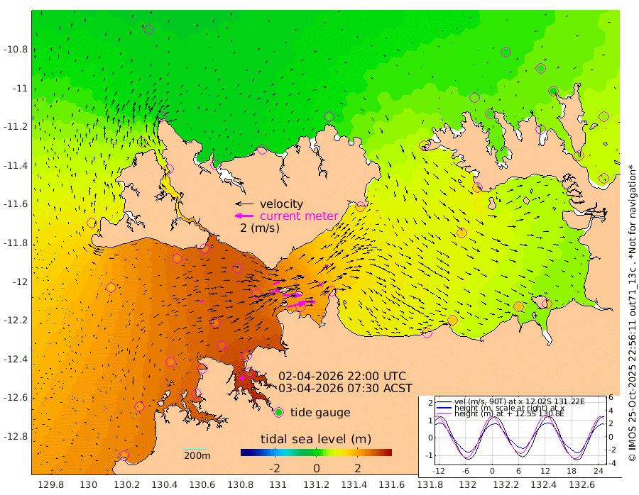 193cm/s 79T +4cm/s rms + 6cm/s 51T. Darwin_C1 52m 149cm/s 93T +4cm/s rms + 7cm/s -161T. Darwin_CW1 22m 127cm/s 72T +4cm/s rms + 8cm/s 61T. Darwin_CW2 34m 103cm/s 46T +3cm/s rms + 9cm/s 98T. Darwin_CW3 22m 199cm/s 89T +5cm/s rms + 7cm/s 88T. Darwin_C3 56m 92cm/s 66T +2cm/s rms + 9cm/s -126T. Darwin_CTbW 22m 31cm/s 73T +1cm/s rms + 1cm/s -47T. DARBGF 30m 17cm/s 90T +4cm/s rms + 3cm/s 80T. NRSDAR 19m -14cm Goodrich Bank 208cm Point Jenny 204cm Native Point 232cm Fish Reef 243cm Tapa Bay 106cm Point Fawcett (Offshore) 261cm Burge Point 234cm Munkunuwa 170cm Beagle A 262cm Parsons Bank 242cm Fenton Patches 259cm Hancox Shoal Area 268cm Nightcliff 292cm Darwin 262cm Charles Point Patches 209cm Glyde Point 169cm Chambers Bay 165cm Point Stuart 185cm Cape Hotham 147cm Christine Reef 177cm West Alligator Head 157cm East Field Island 149cm Two Hills Bay 141cm Camp Point 243cm Medina Inlet South 80cm South Barlow Point 45cm St. Asaph Bay -8cm Cape Van Dieman 1cm Snake Bay -1cm Cache Point 23cm Point Jahleel (Off) 83cm Cape Don 35cm Port Essington 33cm Smith Point - West 27cm NW Peacock Island 14cm North Of Jones Shoal 7cm Peacock Island 56cm Point David 35cm D'urville Point 59cm Copeland Island 55cm One Tree Point