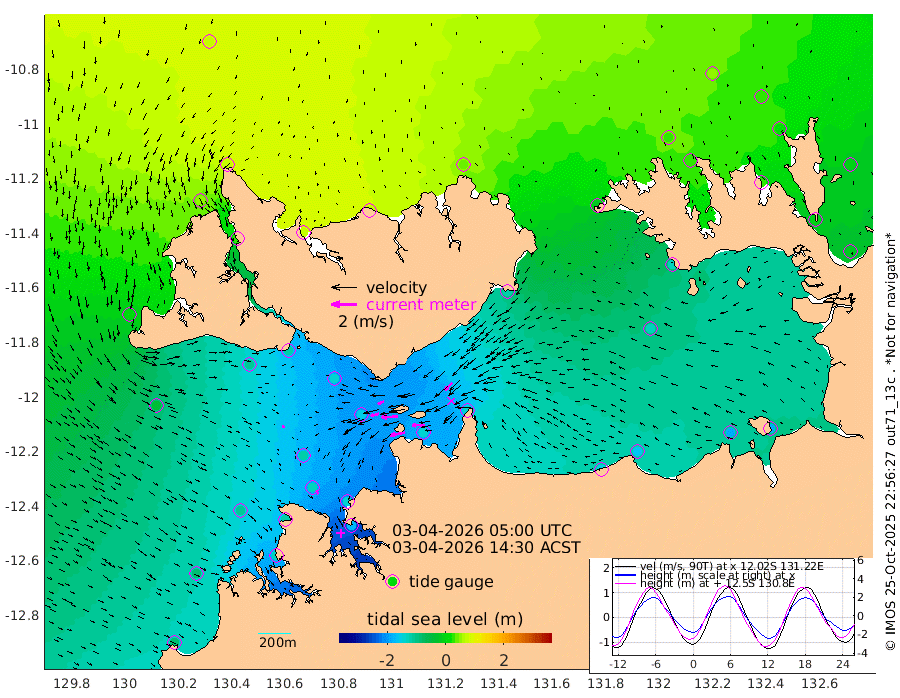 119cm/s -101T +4cm/s rms + 6cm/s 51T. Darwin_C1 52m 100cm/s -92T +4cm/s rms + 7cm/s -161T. Darwin_CW1 22m 66cm/s -106T +4cm/s rms + 8cm/s 61T. Darwin_CW2 34m 79cm/s -135T +3cm/s rms + 9cm/s 98T. Darwin_CW3 22m 128cm/s -91T +5cm/s rms + 7cm/s 88T. Darwin_C3 56m 51cm/s -116T +2cm/s rms + 9cm/s -126T. Darwin_CTbW 22m 22cm/s 113T +1cm/s rms + 1cm/s -47T. DARBGF 30m 31cm/s 142T +4cm/s rms + 3cm/s 80T. NRSDAR 19m 79cm Goodrich Bank -82cm Point Jenny -79cm Native Point -102cm Fish Reef -115cm Tapa Bay 9cm Point Fawcett (Offshore) -131cm Burge Point -111cm Munkunuwa -42cm Beagle A -144cm Parsons Bank -114cm Fenton Patches -148cm Hancox Shoal Area -138cm Nightcliff -169cm Darwin -132cm Charles Point Patches -143cm Glyde Point -155cm Chambers Bay -168cm Point Stuart -137cm Cape Hotham -131cm Christine Reef -188cm West Alligator Head -191cm East Field Island -124cm Two Hills Bay -115cm Camp Point -115cm Medina Inlet South 25cm South Barlow Point 51cm St. Asaph Bay 78cm Cape Van Dieman 71cm Snake Bay 71cm Cache Point 42cm Point Jahleel (Off) -22cm Cape Don 28cm Port Essington 33cm Smith Point - West 33cm NW Peacock Island 54cm North Of Jones Shoal 16cm Peacock Island -6cm Point David 28cm D'urville Point -11cm Copeland Island 0cm One Tree Point