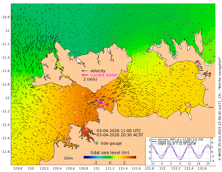 143cm/s 79T +4cm/s rms + 6cm/s 51T. Darwin_C1 52m 112cm/s 92T +4cm/s rms + 7cm/s -161T. Darwin_CW1 22m 85cm/s 71T +4cm/s rms + 8cm/s 61T. Darwin_CW2 34m 93cm/s 46T +3cm/s rms + 9cm/s 98T. Darwin_CW3 22m 145cm/s 90T +5cm/s rms + 7cm/s 88T. Darwin_C3 56m 65cm/s 65T +2cm/s rms + 9cm/s -126T. Darwin_CTbW 22m 25cm/s -67T +1cm/s rms + 1cm/s -47T. DARBGF 30m 43cm/s -46T +4cm/s rms + 3cm/s 80T. NRSDAR 19m -71cm Goodrich Bank 97cm Point Jenny 95cm Native Point 124cm Fish Reef 129cm Tapa Bay -4cm Point Fawcett (Offshore) 159cm Burge Point 121cm Munkunuwa 66cm Beagle A 168cm Parsons Bank 145cm Fenton Patches 167cm Hancox Shoal Area 160cm Nightcliff 198cm Darwin 157cm Charles Point Patches 172cm Glyde Point 176cm Chambers Bay 193cm Point Stuart 160cm Cape Hotham 154cm Christine Reef 214cm West Alligator Head 221cm East Field Island 147cm Two Hills Bay 140cm Camp Point 135cm Medina Inlet South -11cm South Barlow Point -46cm St. Asaph Bay -71cm Cape Van Dieman -61cm Snake Bay -63cm Cache Point -32cm Point Jahleel (Off) 41cm Cape Don -13cm Port Essington -19cm Smith Point - West -17cm NW Peacock Island -43cm North Of Jones Shoal -12cm Peacock Island 22cm Point David -11cm D'urville Point 28cm Copeland Island 19cm One Tree Point
