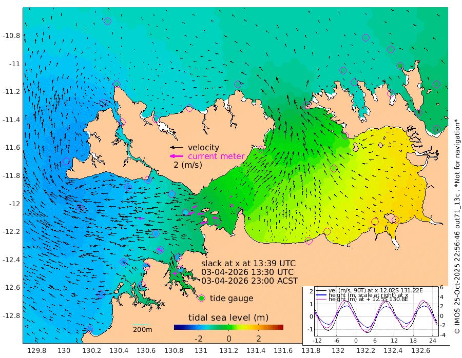 114cm/s -102T +4cm/s rms + 6cm/s 51T. Darwin_C1 52m 81cm/s -89T +4cm/s rms + 7cm/s -161T. Darwin_CW1 22m 87cm/s -109T +4cm/s rms + 8cm/s 61T. Darwin_CW2 34m 27cm/s -110T +3cm/s rms + 9cm/s 98T. Darwin_CW3 22m 94cm/s -93T +5cm/s rms + 7cm/s 88T. Darwin_C3 56m 72cm/s -116T +2cm/s rms + 9cm/s -126T. Darwin_CTbW 22m 92cm/s -89T +1cm/s rms + 1cm/s -47T. DARBGF 30m 86cm/s -57T +4cm/s rms + 3cm/s 80T. NRSDAR 19m -113cm Goodrich Bank -192cm Point Jenny -193cm Native Point -192cm Fish Reef -194cm Tapa Bay -187cm Point Fawcett (Offshore) -184cm Burge Point -196cm Munkunuwa -195cm Beagle A -170cm Parsons Bank -184cm Fenton Patches -152cm Hancox Shoal Area -184cm Nightcliff -171cm Darwin -189cm Charles Point Patches -64cm Glyde Point 46cm Chambers Bay 82cm Point Stuart -24cm Cape Hotham 39cm Christine Reef 104cm West Alligator Head 154cm East Field Island 18cm Two Hills Bay 10cm Camp Point -193cm Medina Inlet South -177cm South Barlow Point -163cm St. Asaph Bay -123cm Cape Van Dieman -127cm Snake Bay -116cm Cache Point -102cm Point Jahleel (Off) -77cm Cape Don -97cm Port Essington -103cm Smith Point - West -92cm NW Peacock Island -103cm North Of Jones Shoal -36cm Peacock Island -68cm Point David -98cm D'urville Point -63cm Copeland Island -74cm One Tree Point