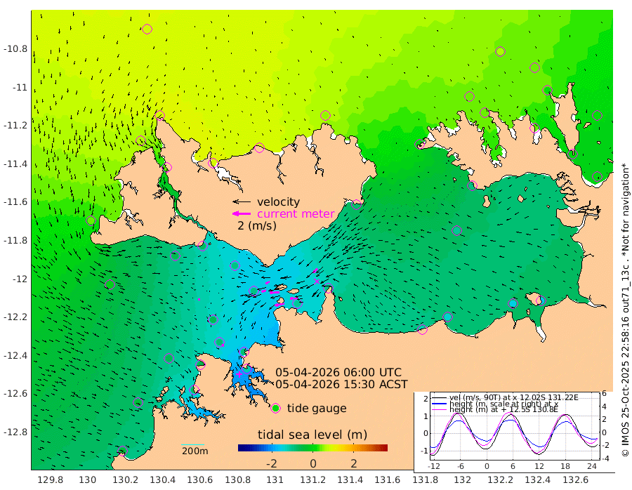 108cm/s -100T +4cm/s rms + 6cm/s 51T. Darwin_C1 52m 91cm/s -92T +4cm/s rms + 7cm/s -161T. Darwin_CW1 22m 52cm/s -106T +4cm/s rms + 8cm/s 61T. Darwin_CW2 34m 66cm/s -135T +3cm/s rms + 9cm/s 98T. Darwin_CW3 22m 109cm/s -91T +5cm/s rms + 7cm/s 88T. Darwin_C3 56m 49cm/s -116T +2cm/s rms + 9cm/s -126T. Darwin_CTbW 22m 23cm/s 108T +1cm/s rms + 1cm/s -47T. DARBGF 30m 30cm/s 141T +4cm/s rms + 3cm/s 80T. NRSDAR 19m 85cm Goodrich Bank -40cm Point Jenny -37cm Native Point -58cm Fish Reef -66cm Tapa Bay 34cm Point Fawcett (Offshore) -75cm Burge Point -65cm Munkunuwa -6cm Beagle A -96cm Parsons Bank -66cm Fenton Patches -101cm Hancox Shoal Area -90cm Nightcliff -114cm Darwin -81cm Charles Point Patches -102cm Glyde Point -124cm Chambers Bay -137cm Point Stuart -101cm Cape Hotham -103cm Christine Reef -156cm West Alligator Head -161cm East Field Island -98cm Two Hills Bay -83cm Camp Point -68cm Medina Inlet South 44cm South Barlow Point 66cm St. Asaph Bay 85cm Cape Van Dieman 80cm Snake Bay 79cm Cache Point 52cm Point Jahleel (Off) -6cm Cape Don 38cm Port Essington 39cm Smith Point - West 40cm NW Peacock Island 58cm North Of Jones Shoal 18cm Peacock Island 8cm Point David 35cm D'urville Point 1cm Copeland Island 11cm One Tree Point