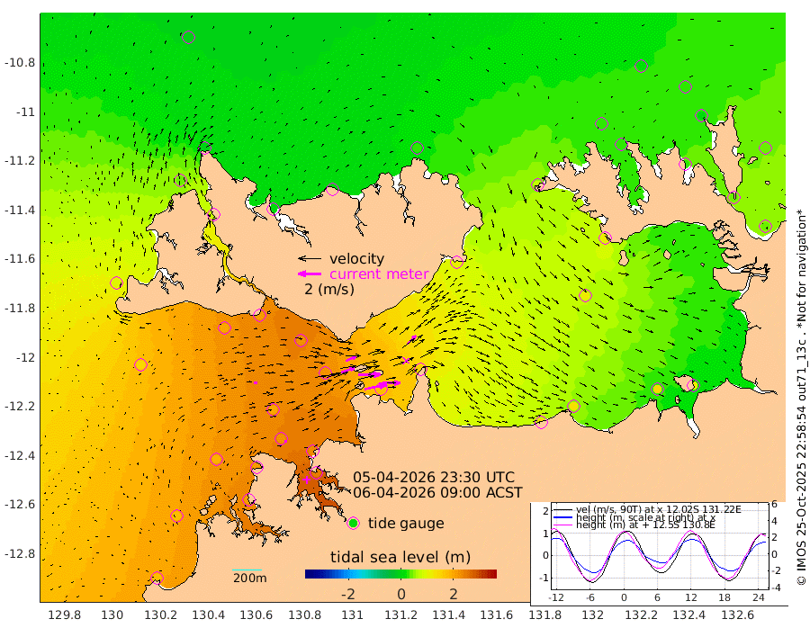 197cm/s 78T +4cm/s rms + 6cm/s 51T. Darwin_C1 52m 154cm/s 93T +4cm/s rms + 7cm/s -161T. Darwin_CW1 22m 121cm/s 72T +4cm/s rms + 8cm/s 61T. Darwin_CW2 34m 104cm/s 46T +3cm/s rms + 9cm/s 98T. Darwin_CW3 22m 197cm/s 89T +5cm/s rms + 7cm/s 88T. Darwin_C3 56m 97cm/s 66T +2cm/s rms + 9cm/s -126T. Darwin_CTbW 22m 29cm/s 74T +1cm/s rms + 1cm/s -47T. DARBGF 30m 19cm/s 89T +4cm/s rms + 3cm/s 80T. NRSDAR 19m -5cm Goodrich Bank 174cm Point Jenny 172cm Native Point 189cm Fish Reef 206cm Tapa Bay 92cm Point Fawcett (Offshore) 208cm Burge Point 197cm Munkunuwa 140cm Beagle A 217cm Parsons Bank 198cm Fenton Patches 218cm Hancox Shoal Area 227cm Nightcliff 243cm Darwin 219cm Charles Point Patches 171cm Glyde Point 136cm Chambers Bay 129cm Point Stuart 147cm Cape Hotham 122cm Christine Reef 140cm West Alligator Head 121cm East Field Island 121cm Two Hills Bay 111cm Camp Point 204cm Medina Inlet South 72cm South Barlow Point 44cm St. Asaph Bay -2cm Cape Van Dieman 7cm Snake Bay 3cm Cache Point 23cm Point Jahleel (Off) 68cm Cape Don 28cm Port Essington 30cm Smith Point - West 23cm NW Peacock Island 13cm North Of Jones Shoal 6cm Peacock Island 38cm Point David 29cm D'urville Point 40cm Copeland Island 38cm One Tree Point