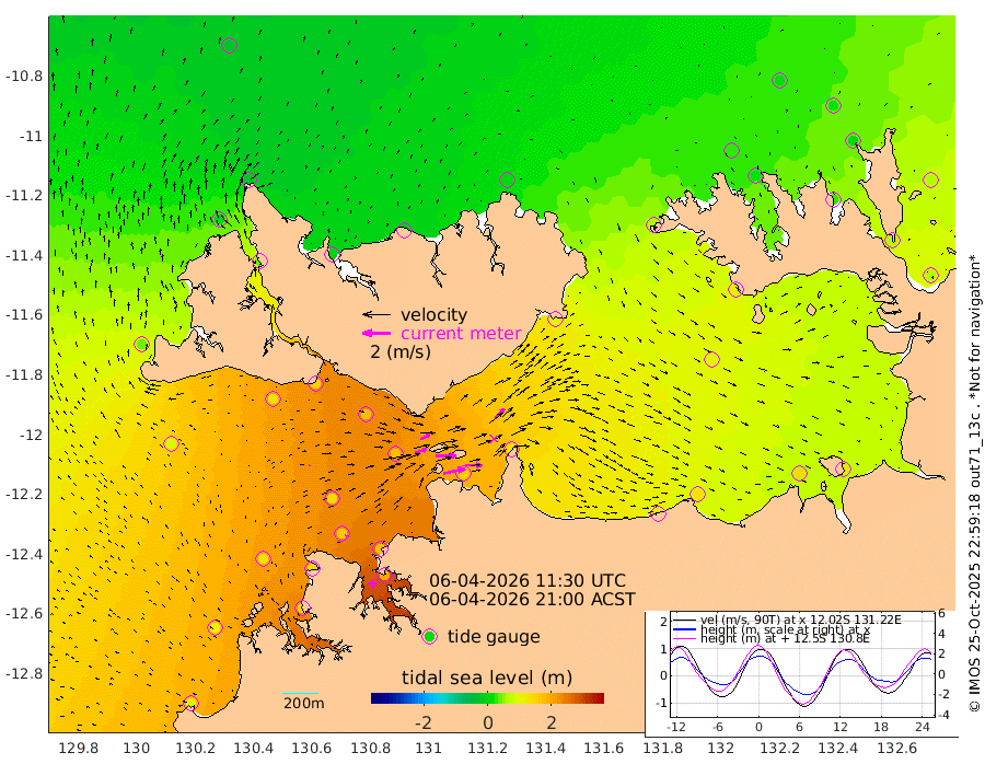 158cm/s 78T +4cm/s rms + 6cm/s 51T. Darwin_C1 52m 121cm/s 91T +4cm/s rms + 7cm/s -161T. Darwin_CW1 22m 86cm/s 73T +4cm/s rms + 8cm/s 61T. Darwin_CW2 34m 98cm/s 43T +3cm/s rms + 9cm/s 98T. Darwin_CW3 22m 149cm/s 89T +5cm/s rms + 7cm/s 88T. Darwin_C3 56m 75cm/s 66T +2cm/s rms + 9cm/s -126T. Darwin_CTbW 22m 8cm/s 41T +1cm/s rms + 1cm/s -47T. DARBGF 30m 10cm/s 20T +4cm/s rms + 3cm/s 80T. NRSDAR 19m -30cm Goodrich Bank 111cm Point Jenny 109cm Native Point 131cm Fish Reef 140cm Tapa Bay 35cm Point Fawcett (Offshore) 157cm Burge Point 133cm Munkunuwa 82cm Beagle A 173cm Parsons Bank 143cm Fenton Patches 169cm Hancox Shoal Area 172cm Nightcliff 197cm Darwin 166cm Charles Point Patches 148cm Glyde Point 125cm Chambers Bay 128cm Point Stuart 132cm Cape Hotham 109cm Christine Reef 137cm West Alligator Head 128cm East Field Island 114cm Two Hills Bay 107cm Camp Point 148cm Medina Inlet South 34cm South Barlow Point -1cm St. Asaph Bay -27cm Cape Van Dieman -11cm Snake Bay -23cm Cache Point 1cm Point Jahleel (Off) 58cm Cape Don 23cm Port Essington 20cm Smith Point - West 22cm NW Peacock Island 5cm North Of Jones Shoal 5cm Peacock Island 60cm Point David 30cm D'urville Point 64cm Copeland Island 58cm One Tree Point