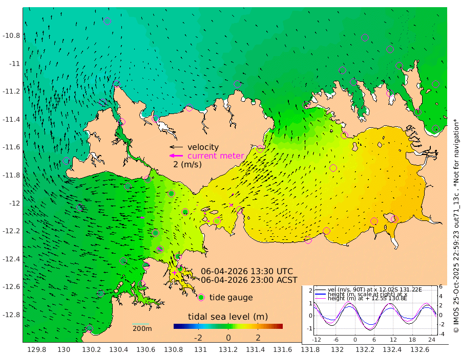 29cm/s 83T +4cm/s rms + 6cm/s 51T. Darwin_C1 52m 29cm/s 89T +4cm/s rms + 7cm/s -161T. Darwin_CW1 22m 3cm/s -17T +4cm/s rms + 8cm/s 61T. Darwin_CW2 34m 39cm/s 44T +3cm/s rms + 9cm/s 98T. Darwin_CW3 22m 26cm/s 95T +5cm/s rms + 7cm/s 88T. Darwin_C3 56m 7cm/s 65T +2cm/s rms + 9cm/s -126T. Darwin_CTbW 22m 62cm/s -85T +1cm/s rms + 1cm/s -47T. DARBGF 30m 77cm/s -54T +4cm/s rms + 3cm/s 80T. NRSDAR 19m -105cm Goodrich Bank -71cm Point Jenny -76cm Native Point -53cm Fish Reef -58cm Tapa Bay -107cm Point Fawcett (Offshore) -42cm Burge Point -66cm Munkunuwa -89cm Beagle A -20cm Parsons Bank -48cm Fenton Patches -10cm Hancox Shoal Area -28cm Nightcliff -7cm Darwin -39cm Charles Point Patches 46cm Glyde Point 120cm Chambers Bay 150cm Point Stuart 71cm Cape Hotham 99cm Christine Reef 172cm West Alligator Head 203cm East Field Island 93cm Two Hills Bay 74cm Camp Point -50cm Medina Inlet South -109cm South Barlow Point -119cm St. Asaph Bay -109cm Cape Van Dieman -102cm Snake Bay -97cm Cache Point -72cm Point Jahleel (Off) -14cm Cape Don -52cm Port Essington -58cm Smith Point - West -50cm NW Peacock Island -65cm North Of Jones Shoal -19cm Peacock Island -9cm Point David -48cm D'urville Point -1cm Copeland Island -10cm One Tree Point