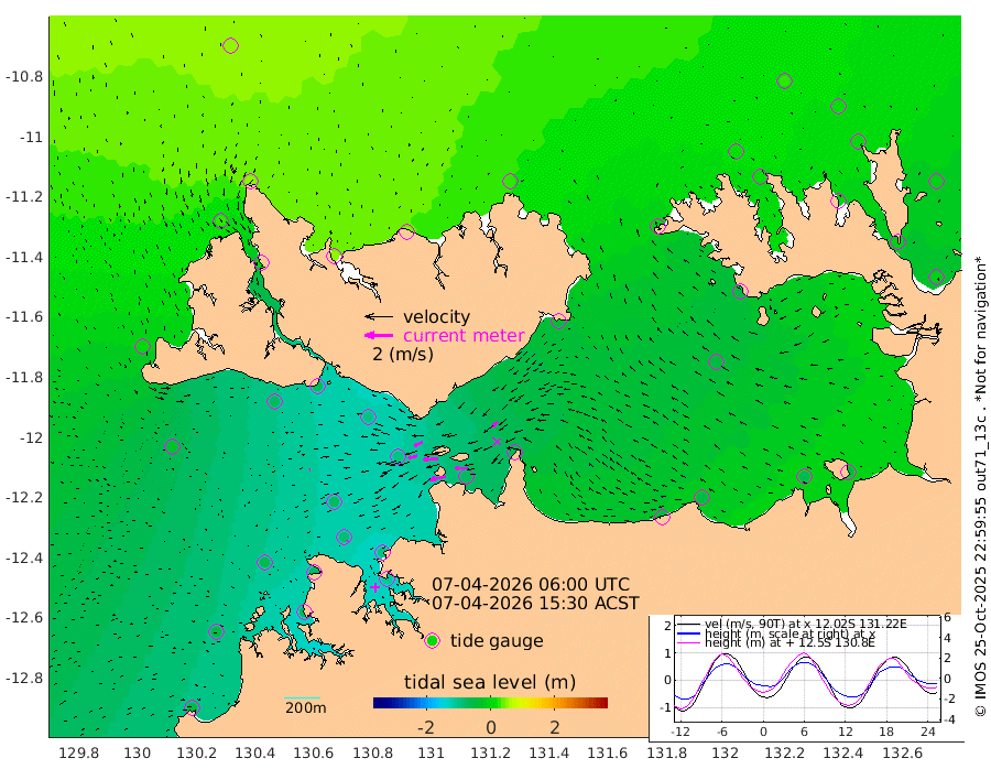 116cm/s -101T +4cm/s rms + 6cm/s 51T. Darwin_C1 52m 85cm/s -90T +4cm/s rms + 7cm/s -161T. Darwin_CW1 22m 66cm/s -107T +4cm/s rms + 8cm/s 61T. Darwin_CW2 34m 52cm/s -133T +3cm/s rms + 9cm/s 98T. Darwin_CW3 22m 102cm/s -91T +5cm/s rms + 7cm/s 88T. Darwin_C3 56m 66cm/s -115T +2cm/s rms + 9cm/s -126T. Darwin_CTbW 22m 10cm/s -111T +1cm/s rms + 1cm/s -47T. DARBGF 30m 10cm/s -123T +4cm/s rms + 3cm/s 80T. NRSDAR 19m 56cm Goodrich Bank -50cm Point Jenny -48cm Native Point -60cm Fish Reef -70cm Tapa Bay 11cm Point Fawcett (Offshore) -74cm Burge Point -75cm Munkunuwa -23cm Beagle A -96cm Parsons Bank -68cm Fenton Patches -94cm Hancox Shoal Area -94cm Nightcliff -103cm Darwin -79cm Charles Point Patches -68cm Glyde Point -58cm Chambers Bay -56cm Point Stuart -57cm Cape Hotham -50cm Christine Reef -63cm West Alligator Head -52cm East Field Island -46cm Two Hills Bay -37cm Camp Point -73cm Medina Inlet South 9cm South Barlow Point 33cm St. Asaph Bay 54cm Cape Van Dieman 47cm Snake Bay 54cm Cache Point 33cm Point Jahleel (Off) -7cm Cape Don 19cm Port Essington 16cm Smith Point - West 18cm NW Peacock Island 32cm North Of Jones Shoal 9cm Peacock Island -4cm Point David 11cm D'urville Point -10cm Copeland Island -2cm One Tree Point