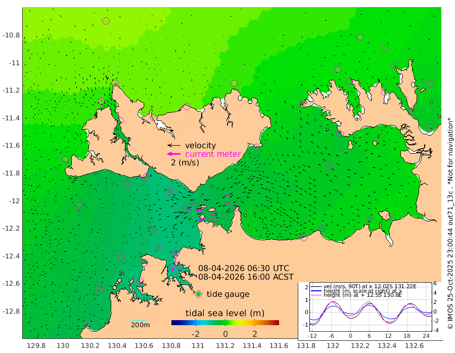 98cm/s -101T +4cm/s rms + 6cm/s 51T. Darwin_C1 52m 61cm/s -90T +4cm/s rms + 7cm/s -161T. Darwin_CW1 22m 50cm/s -107T +4cm/s rms + 8cm/s 61T. Darwin_CW2 34m 42cm/s -132T +3cm/s rms + 9cm/s 98T. Darwin_CW3 22m 71cm/s -91T +5cm/s rms + 7cm/s 88T. Darwin_C3 56m 59cm/s -115T +2cm/s rms + 9cm/s -126T. Darwin_CTbW 22m 6cm/s -113T +1cm/s rms + 1cm/s -47T. DARBGF 30m 8cm/s -134T +4cm/s rms + 3cm/s 80T. NRSDAR 19m 55cm Goodrich Bank -22cm Point Jenny -20cm Native Point -28cm Fish Reef -37cm Tapa Bay 25cm Point Fawcett (Offshore) -39cm Burge Point -43cm Munkunuwa -1cm Beagle A -61cm Parsons Bank -35cm Fenton Patches -61cm Hancox Shoal Area -61cm Nightcliff -62cm Darwin -41cm Charles Point Patches -39cm Glyde Point -37cm Chambers Bay -35cm Point Stuart -34cm Cape Hotham -33cm Christine Reef -41cm West Alligator Head -32cm East Field Island -28cm Two Hills Bay -18cm Camp Point -39cm Medina Inlet South 20cm South Barlow Point 39cm St. Asaph Bay 54cm Cape Van Dieman 47cm Snake Bay 53cm Cache Point 36cm Point Jahleel (Off) 3cm Cape Don 24cm Port Essington 19cm Smith Point - West 20cm NW Peacock Island 32cm North Of Jones Shoal 9cm Peacock Island 1cm Point David 14cm D'urville Point -5cm Copeland Island 3cm One Tree Point