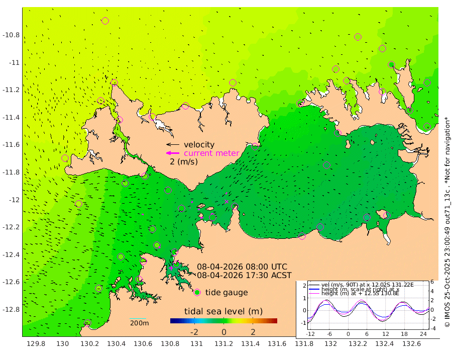 46cm/s -99T +4cm/s rms + 6cm/s 51T. Darwin_C1 52m 33cm/s -93T +4cm/s rms + 7cm/s -161T. Darwin_CW1 22m 7cm/s -106T +4cm/s rms + 8cm/s 61T. Darwin_CW2 34m 32cm/s -136T +3cm/s rms + 9cm/s 98T. Darwin_CW3 22m 26cm/s -90T +5cm/s rms + 7cm/s 88T. Darwin_C3 56m 25cm/s -116T +2cm/s rms + 9cm/s -126T. Darwin_CTbW 22m 26cm/s 96T +1cm/s rms + 1cm/s -47T. DARBGF 30m 28cm/s 132T +4cm/s rms + 3cm/s 80T. NRSDAR 19m 80cm Goodrich Bank 42cm Point Jenny 46cm Native Point 35cm Fish Reef 36cm Tapa Bay 71cm Point Fawcett (Offshore) 35cm Burge Point 37cm Munkunuwa 58cm Beagle A 18cm Parsons Bank 33cm Fenton Patches 8cm Hancox Shoal Area 12cm Nightcliff 15cm Darwin 35cm Charles Point Patches -12cm Glyde Point -60cm Chambers Bay -69cm Point Stuart -25cm Cape Hotham -50cm Christine Reef -85cm West Alligator Head -98cm East Field Island -39cm Two Hills Bay -22cm Camp Point 34cm Medina Inlet South 75cm South Barlow Point 79cm St. Asaph Bay 83cm Cape Van Dieman 82cm Snake Bay 75cm Cache Point 59cm Point Jahleel (Off) 25cm Cape Don 52cm Port Essington 48cm Smith Point - West 48cm NW Peacock Island 55cm North Of Jones Shoal 18cm Peacock Island 33cm Point David 46cm D'urville Point 26cm Copeland Island 32cm One Tree Point