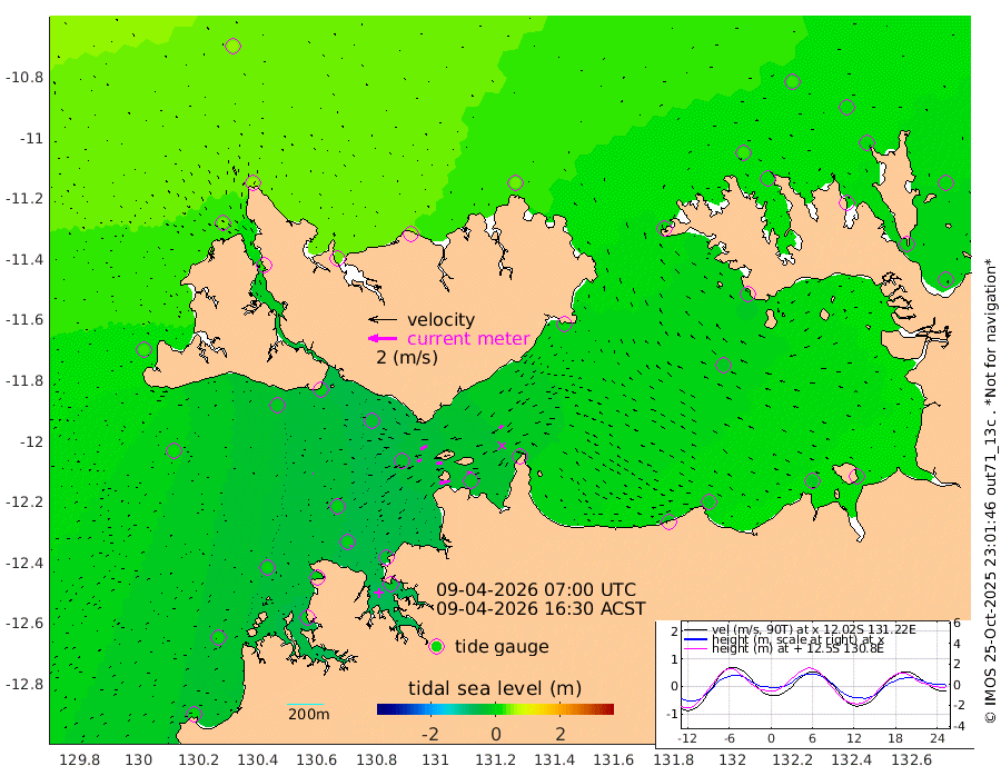 80cm/s -102T +4cm/s rms + 6cm/s 51T. Darwin_C1 52m 35cm/s -90T +4cm/s rms + 7cm/s -161T. Darwin_CW1 22m 33cm/s -108T +4cm/s rms + 8cm/s 61T. Darwin_CW2 34m 32cm/s -130T +3cm/s rms + 9cm/s 98T. Darwin_CW3 22m 39cm/s -91T +5cm/s rms + 7cm/s 88T. Darwin_C3 56m 50cm/s -115T +2cm/s rms + 9cm/s -126T. Darwin_CTbW 22m 4cm/s -106T +1cm/s rms + 1cm/s -47T. DARBGF 30m 6cm/s -133T +4cm/s rms + 3cm/s 80T. NRSDAR 19m 50cm Goodrich Bank 1cm Point Jenny 3cm Native Point 0cm Fish Reef -7cm Tapa Bay 34cm Point Fawcett (Offshore) -8cm Burge Point -15cm Munkunuwa 18cm Beagle A -29cm Parsons Bank -6cm Fenton Patches -29cm Hancox Shoal Area -30cm Nightcliff -23cm Darwin -5cm Charles Point Patches -12cm Glyde Point -14cm Chambers Bay -12cm Point Stuart -12cm Cape Hotham -15cm Christine Reef -17cm West Alligator Head -9cm East Field Island -10cm Two Hills Bay 2cm Camp Point -9cm Medina Inlet South 26cm South Barlow Point 41cm St. Asaph Bay 49cm Cape Van Dieman 44cm Snake Bay 49cm Cache Point 35cm Point Jahleel (Off) 12cm Cape Don 26cm Port Essington 20cm Smith Point - West 20cm NW Peacock Island 29cm North Of Jones Shoal 8cm Peacock Island 4cm Point David 15cm D'urville Point -1cm Copeland Island 6cm One Tree Point