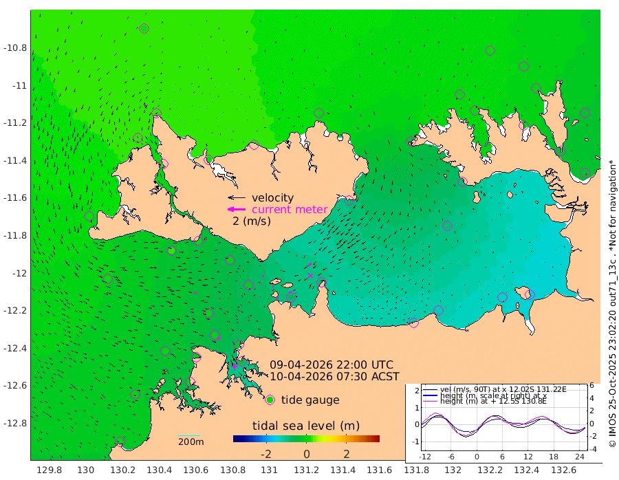 29cm/s -102T +4cm/s rms + 6cm/s 51T. Darwin_C1 52m 30cm/s -94T +4cm/s rms + 7cm/s -161T. Darwin_CW1 22m 8cm/s 65T +4cm/s rms + 8cm/s 61T. Darwin_CW2 34m 40cm/s -142T +3cm/s rms + 9cm/s 98T. Darwin_CW3 22m 11cm/s -80T +5cm/s rms + 7cm/s 88T. Darwin_C3 56m 16cm/s -115T +2cm/s rms + 9cm/s -126T. Darwin_CTbW 22m 31cm/s 94T +1cm/s rms + 1cm/s -47T. DARBGF 30m 35cm/s 125T +4cm/s rms + 3cm/s 80T. NRSDAR 19m 21cm Goodrich Bank 5cm Point Jenny 7cm Native Point 1cm Fish Reef -3cm Tapa Bay 16cm Point Fawcett (Offshore) 2cm Burge Point 25cm Munkunuwa 14cm Beagle A -1cm Parsons Bank 0cm Fenton Patches -19cm Hancox Shoal Area -14cm Nightcliff -19cm Darwin -10cm Charles Point Patches -58cm Glyde Point -109cm Chambers Bay -121cm Point Stuart -72cm Cape Hotham -89cm Christine Reef -134cm West Alligator Head -157cm East Field Island -87cm Two Hills Bay -81cm Camp Point 4cm Medina Inlet South 32cm South Barlow Point 29cm St. Asaph Bay 23cm Cape Van Dieman 19cm Snake Bay 13cm Cache Point 3cm Point Jahleel (Off) -25cm Cape Don -2cm Port Essington 2cm Smith Point - West -3cm NW Peacock Island 1cm North Of Jones Shoal -1cm Peacock Island -27cm Point David -2cm D'urville Point -29cm Copeland Island -25cm One Tree Point