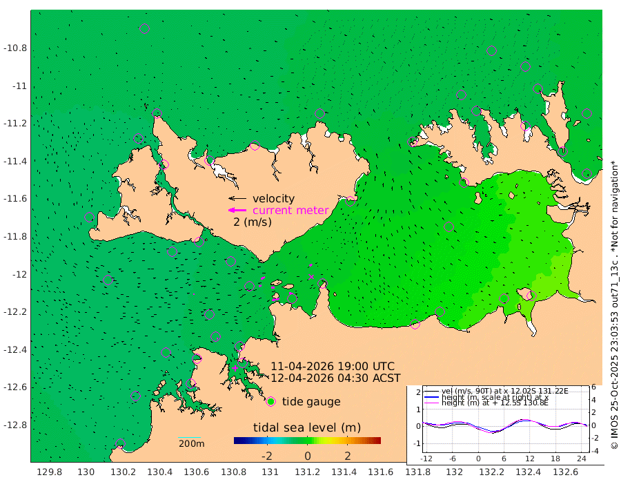 84cm/s -103T +4cm/s rms + 6cm/s 51T. Darwin_C1 52m 40cm/s -89T +4cm/s rms + 7cm/s -161T. Darwin_CW1 22m 26cm/s -106T +4cm/s rms + 8cm/s 61T. Darwin_CW2 34m 30cm/s -120T +3cm/s rms + 9cm/s 98T. Darwin_CW3 22m 33cm/s -90T +5cm/s rms + 7cm/s 88T. Darwin_C3 56m 50cm/s -116T +2cm/s rms + 9cm/s -126T. Darwin_CTbW 22m 17cm/s -93T +1cm/s rms + 1cm/s -47T. DARBGF 30m 13cm/s -72T +4cm/s rms + 3cm/s 80T. NRSDAR 19m -58cm Goodrich Bank -66cm Point Jenny -68cm Native Point -55cm Fish Reef -64cm Tapa Bay -62cm Point Fawcett (Offshore) -63cm Burge Point -62cm Munkunuwa -63cm Beagle A -61cm Parsons Bank -58cm Fenton Patches -54cm Hancox Shoal Area -53cm Nightcliff -58cm Darwin -64cm Charles Point Patches -30cm Glyde Point 5cm Chambers Bay 11cm Point Stuart -13cm Cape Hotham -14cm Christine Reef 16cm West Alligator Head 30cm East Field Island -9cm Two Hills Bay -12cm Camp Point -62cm Medina Inlet South -67cm South Barlow Point -62cm St. Asaph Bay -59cm Cape Van Dieman -60cm Snake Bay -56cm Cache Point -49cm Point Jahleel (Off) -42cm Cape Don -48cm Port Essington -51cm Smith Point - West -49cm NW Peacock Island -45cm North Of Jones Shoal -15cm Peacock Island -35cm Point David -49cm D'urville Point -31cm Copeland Island -36cm One Tree Point