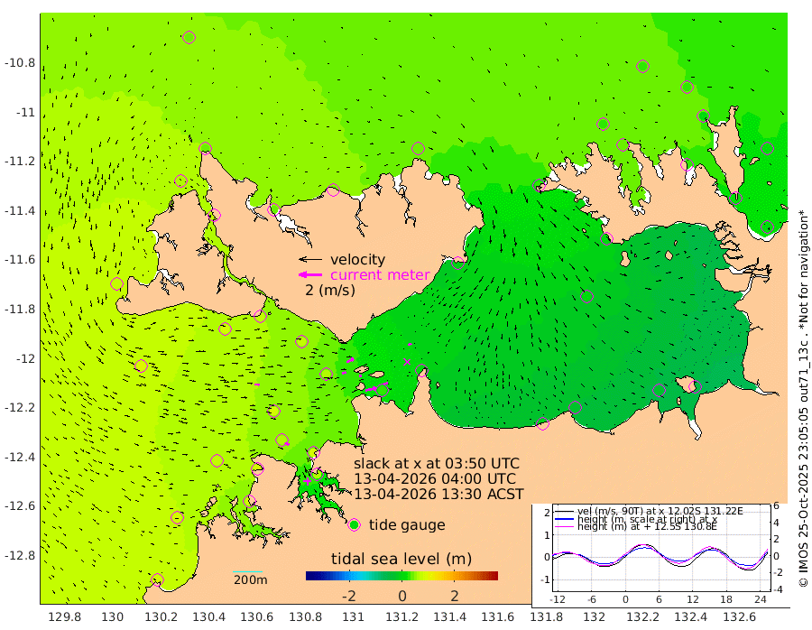 96cm/s 78T +4cm/s rms + 6cm/s 51T. Darwin_C1 52m 40cm/s 91T +4cm/s rms + 7cm/s -161T. Darwin_CW1 22m 33cm/s 73T +4cm/s rms + 8cm/s 61T. Darwin_CW2 34m 29cm/s 60T +3cm/s rms + 9cm/s 98T. Darwin_CW3 22m 25cm/s 88T +5cm/s rms + 7cm/s 88T. Darwin_C3 56m 67cm/s 64T +2cm/s rms + 9cm/s -126T. Darwin_CTbW 22m 39cm/s 92T +1cm/s rms + 1cm/s -47T. DARBGF 30m 39cm/s 121T +4cm/s rms + 3cm/s 80T. NRSDAR 19m 40cm Goodrich Bank 88cm Point Jenny 88cm Native Point 78cm Fish Reef 79cm Tapa Bay 71cm Point Fawcett (Offshore) 81cm Burge Point 80cm Munkunuwa 90cm Beagle A 69cm Parsons Bank 85cm Fenton Patches 61cm Hancox Shoal Area 83cm Nightcliff 61cm Darwin 63cm Charles Point Patches 28cm Glyde Point -8cm Chambers Bay -23cm Point Stuart 10cm Cape Hotham 7cm Christine Reef -28cm West Alligator Head -47cm East Field Island 0cm Two Hills Bay -1cm Camp Point 75cm Medina Inlet South 68cm South Barlow Point 62cm St. Asaph Bay 44cm Cape Van Dieman 43cm Snake Bay 43cm Cache Point 37cm Point Jahleel (Off) 32cm Cape Don 29cm Port Essington 37cm Smith Point - West 30cm NW Peacock Island 32cm North Of Jones Shoal 10cm Peacock Island 12cm Point David 33cm D'urville Point 9cm Copeland Island 15cm One Tree Point