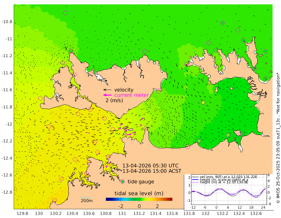 117cm/s 77T +4cm/s rms + 6cm/s 51T. Darwin_C1 52m 73cm/s 90T +4cm/s rms + 7cm/s -161T. Darwin_CW1 22m 58cm/s 73T +4cm/s rms + 8cm/s 61T. Darwin_CW2 34m 55cm/s 50T +3cm/s rms + 9cm/s 98T. Darwin_CW3 22m 69cm/s 89T +5cm/s rms + 7cm/s 88T. Darwin_C3 56m 72cm/s 65T +2cm/s rms + 9cm/s -126T. Darwin_CTbW 22m 36cm/s 87T +1cm/s rms + 1cm/s -47T. DARBGF 30m 34cm/s 115T +4cm/s rms + 3cm/s 80T. NRSDAR 19m 25cm Goodrich Bank 132cm Point Jenny 131cm Native Point 129cm Fish Reef 134cm Tapa Bay 83cm Point Fawcett (Offshore) 142cm Burge Point 123cm Munkunuwa 125cm Beagle A 124cm Parsons Bank 143cm Fenton Patches 121cm Hancox Shoal Area 147cm Nightcliff 134cm Darwin 128cm Charles Point Patches 90cm Glyde Point 60cm Chambers Bay 42cm Point Stuart 66cm Cape Hotham 62cm Christine Reef 43cm West Alligator Head 30cm East Field Island 48cm Two Hills Bay 55cm Camp Point 129cm Medina Inlet South 71cm South Barlow Point 58cm St. Asaph Bay 28cm Cape Van Dieman 29cm Snake Bay 29cm Cache Point 32cm Point Jahleel (Off) 48cm Cape Don 26cm Port Essington 30cm Smith Point - West 23cm NW Peacock Island 22cm North Of Jones Shoal 8cm Peacock Island 14cm Point David 26cm D'urville Point 14cm Copeland Island 19cm One Tree Point