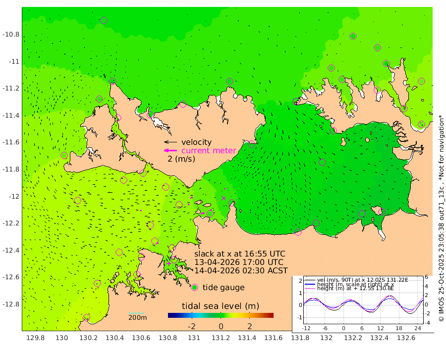 56cm/s 77T +4cm/s rms + 6cm/s 51T. Darwin_C1 52m 14cm/s 72T +4cm/s rms + 7cm/s -161T. Darwin_CW1 22m 18cm/s 75T +4cm/s rms + 8cm/s 61T. Darwin_CW2 34m 19cm/s 55T +3cm/s rms + 9cm/s 98T. Darwin_CW3 22m 5cm/s 78T +5cm/s rms + 7cm/s 88T. Darwin_C3 56m 40cm/s 63T +2cm/s rms + 9cm/s -126T. Darwin_CTbW 22m 29cm/s 94T +1cm/s rms + 1cm/s -47T. DARBGF 30m 31cm/s 121T +4cm/s rms + 3cm/s 80T. NRSDAR 19m 13cm Goodrich Bank 67cm Point Jenny 66cm Native Point 56cm Fish Reef 71cm Tapa Bay 42cm Point Fawcett (Offshore) 56cm Burge Point 57cm Munkunuwa 57cm Beagle A 61cm Parsons Bank 62cm Fenton Patches 64cm Hancox Shoal Area 70cm Nightcliff 55cm Darwin 57cm Charles Point Patches 31cm Glyde Point 12cm Chambers Bay -5cm Point Stuart 21cm Cape Hotham 8cm Christine Reef -11cm West Alligator Head -27cm East Field Island 8cm Two Hills Bay 10cm Camp Point 54cm Medina Inlet South 35cm South Barlow Point 28cm St. Asaph Bay 18cm Cape Van Dieman 18cm Snake Bay 18cm Cache Point 19cm Point Jahleel (Off) 24cm Cape Don 24cm Port Essington 30cm Smith Point - West 29cm NW Peacock Island 18cm North Of Jones Shoal 8cm Peacock Island 43cm Point David 34cm D'urville Point 44cm Copeland Island 34cm One Tree Point