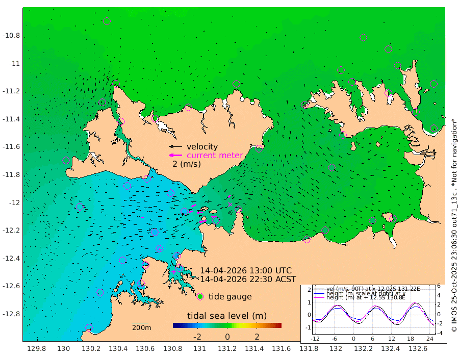 111cm/s -102T +4cm/s rms + 6cm/s 51T. Darwin_C1 52m 78cm/s -89T +4cm/s rms + 7cm/s -161T. Darwin_CW1 22m 73cm/s -108T +4cm/s rms + 8cm/s 61T. Darwin_CW2 34m 50cm/s -134T +3cm/s rms + 9cm/s 98T. Darwin_CW3 22m 91cm/s -91T +5cm/s rms + 7cm/s 88T. Darwin_C3 56m 68cm/s -115T +2cm/s rms + 9cm/s -126T. Darwin_CTbW 22m 38cm/s -94T +1cm/s rms + 1cm/s -47T. DARBGF 30m 33cm/s -65T +4cm/s rms + 3cm/s 80T. NRSDAR 19m 2cm Goodrich Bank -146cm Point Jenny -146cm Native Point -154cm Fish Reef -163cm Tapa Bay -75cm Point Fawcett (Offshore) -174cm Burge Point -153cm Munkunuwa -137cm Beagle A -162cm Parsons Bank -176cm Fenton Patches -161cm Hancox Shoal Area -188cm Nightcliff -177cm Darwin -159cm Charles Point Patches -120cm Glyde Point -83cm Chambers Bay -69cm Point Stuart -99cm Cape Hotham -76cm Christine Reef -73cm West Alligator Head -58cm East Field Island -68cm Two Hills Bay -73cm Camp Point -156cm Medina Inlet South -62cm South Barlow Point -41cm St. Asaph Bay -3cm Cape Van Dieman -8cm Snake Bay -4cm Cache Point -17cm Point Jahleel (Off) -42cm Cape Don -13cm Port Essington -18cm Smith Point - West -12cm NW Peacock Island -4cm North Of Jones Shoal -3cm Peacock Island -21cm Point David -17cm D'urville Point -22cm Copeland Island -18cm One Tree Point