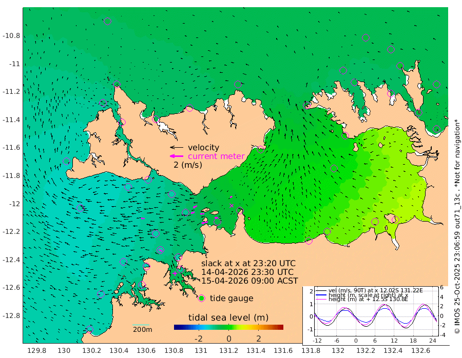 99cm/s -103T +4cm/s rms + 6cm/s 51T. Darwin_C1 52m 48cm/s -87T +4cm/s rms + 7cm/s -161T. Darwin_CW1 22m 57cm/s -109T +4cm/s rms + 8cm/s 61T. Darwin_CW2 34m 35cm/s -119T +3cm/s rms + 9cm/s 98T. Darwin_CW3 22m 55cm/s -93T +5cm/s rms + 7cm/s 88T. Darwin_C3 56m 63cm/s -116T +2cm/s rms + 9cm/s -126T. Darwin_CTbW 22m 55cm/s -89T +1cm/s rms + 1cm/s -47T. DARBGF 30m 52cm/s -58T +4cm/s rms + 3cm/s 80T. NRSDAR 19m -51cm Goodrich Bank -130cm Point Jenny -131cm Native Point -118cm Fish Reef -128cm Tapa Bay -100cm Point Fawcett (Offshore) -126cm Burge Point -126cm Munkunuwa -121cm Beagle A -116cm Parsons Bank -122cm Fenton Patches -103cm Hancox Shoal Area -118cm Nightcliff -109cm Darwin -116cm Charles Point Patches -49cm Glyde Point 12cm Chambers Bay 37cm Point Stuart -18cm Cape Hotham 4cm Christine Reef 49cm West Alligator Head 81cm East Field Island 5cm Two Hills Bay -4cm Camp Point -119cm Medina Inlet South -94cm South Barlow Point -80cm St. Asaph Bay -59cm Cape Van Dieman -57cm Snake Bay -54cm Cache Point -47cm Point Jahleel (Off) -48cm Cape Don -50cm Port Essington -54cm Smith Point - West -48cm NW Peacock Island -42cm North Of Jones Shoal -15cm Peacock Island -42cm Point David -53cm D'urville Point -40cm Copeland Island -41cm One Tree Point