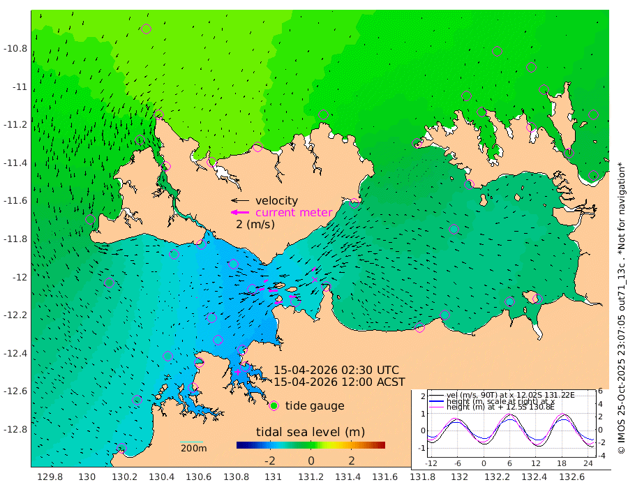 90cm/s -101T +4cm/s rms + 6cm/s 51T. Darwin_C1 52m 80cm/s -91T +4cm/s rms + 7cm/s -161T. Darwin_CW1 22m 59cm/s -106T +4cm/s rms + 8cm/s 61T. Darwin_CW2 34m 58cm/s -137T +3cm/s rms + 9cm/s 98T. Darwin_CW3 22m 99cm/s -91T +5cm/s rms + 7cm/s 88T. Darwin_C3 56m 47cm/s -116T +2cm/s rms + 9cm/s -126T. Darwin_CTbW 22m 6cm/s 178T +1cm/s rms + 1cm/s -47T. DARBGF 30m 9cm/s 170T +4cm/s rms + 3cm/s 80T. NRSDAR 19m 40cm Goodrich Bank -109cm Point Jenny -107cm Native Point -114cm Fish Reef -135cm Tapa Bay -24cm Point Fawcett (Offshore) -144cm Burge Point -115cm Munkunuwa -78cm Beagle A -144cm Parsons Bank -136cm Fenton Patches -154cm Hancox Shoal Area -157cm Nightcliff -171cm Darwin -150cm Charles Point Patches -134cm Glyde Point -133cm Chambers Bay -122cm Point Stuart -116cm Cape Hotham -114cm Christine Reef -133cm West Alligator Head -133cm East Field Island -95cm Two Hills Bay -108cm Camp Point -127cm Medina Inlet South -11cm South Barlow Point 11cm St. Asaph Bay 39cm Cape Van Dieman 35cm Snake Bay 35cm Cache Point 16cm Point Jahleel (Off) -35cm Cape Don 3cm Port Essington 7cm Smith Point - West 8cm NW Peacock Island 22cm North Of Jones Shoal 6cm Peacock Island -21cm Point David 3cm D'urville Point -25cm Copeland Island -16cm One Tree Point