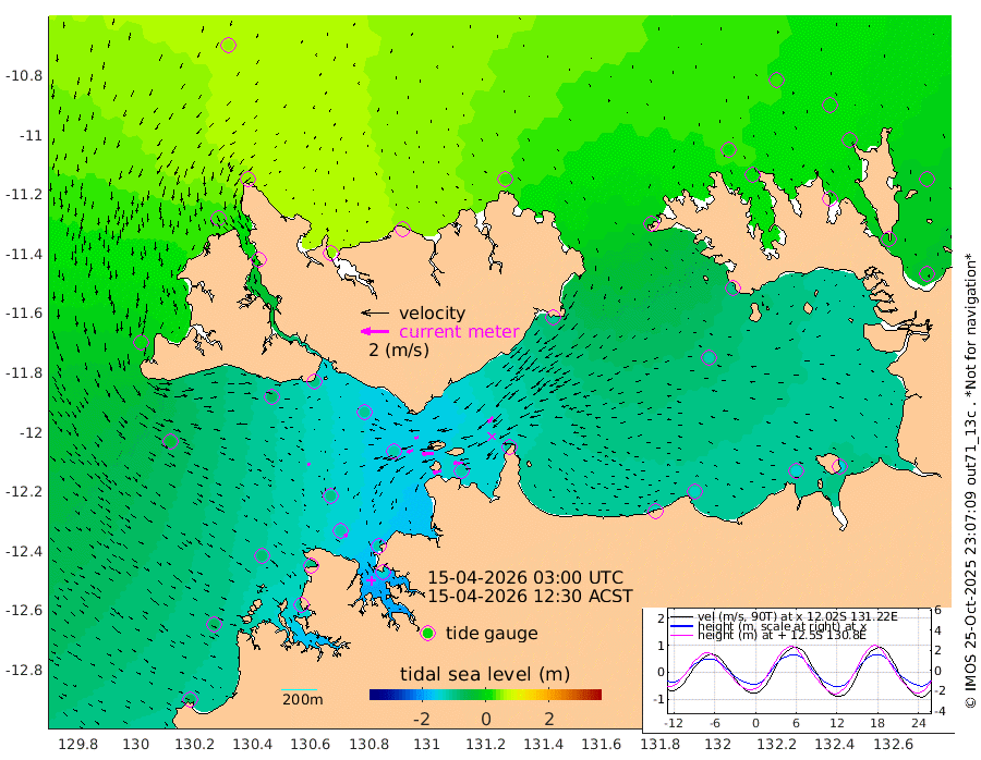 64cm/s -101T +4cm/s rms + 6cm/s 51T. Darwin_C1 52m 65cm/s -93T +4cm/s rms + 7cm/s -161T. Darwin_CW1 22m 44cm/s -105T +4cm/s rms + 8cm/s 61T. Darwin_CW2 34m 52cm/s -139T +3cm/s rms + 9cm/s 98T. Darwin_CW3 22m 83cm/s -91T +5cm/s rms + 7cm/s 88T. Darwin_C3 56m 29cm/s -116T +2cm/s rms + 9cm/s -126T. Darwin_CTbW 22m 18cm/s 111T +1cm/s rms + 1cm/s -47T. DARBGF 30m 24cm/s 138T +4cm/s rms + 3cm/s 80T. NRSDAR 19m 53cm Goodrich Bank -72cm Point Jenny -70cm Native Point -79cm Fish Reef -98cm Tapa Bay 3cm Point Fawcett (Offshore) -107cm Burge Point -79cm Munkunuwa -42cm Beagle A -110cm Parsons Bank -99cm Fenton Patches -123cm Hancox Shoal Area -121cm Nightcliff -138cm Darwin -116cm Charles Point Patches -118cm Glyde Point -134cm Chambers Bay -129cm Point Stuart -107cm Cape Hotham -113cm Christine Reef -142cm West Alligator Head -151cm East Field Island -94cm Two Hills Bay -105cm Camp Point -92cm Medina Inlet South 15cm South Barlow Point 32cm St. Asaph Bay 54cm Cape Van Dieman 51cm Snake Bay 49cm Cache Point 28cm Point Jahleel (Off) -22cm Cape Don 16cm Port Essington 21cm Smith Point - West 20cm NW Peacock Island 33cm North Of Jones Shoal 10cm Peacock Island -10cm Point David 17cm D'urville Point -16cm Copeland Island -6cm One Tree Point